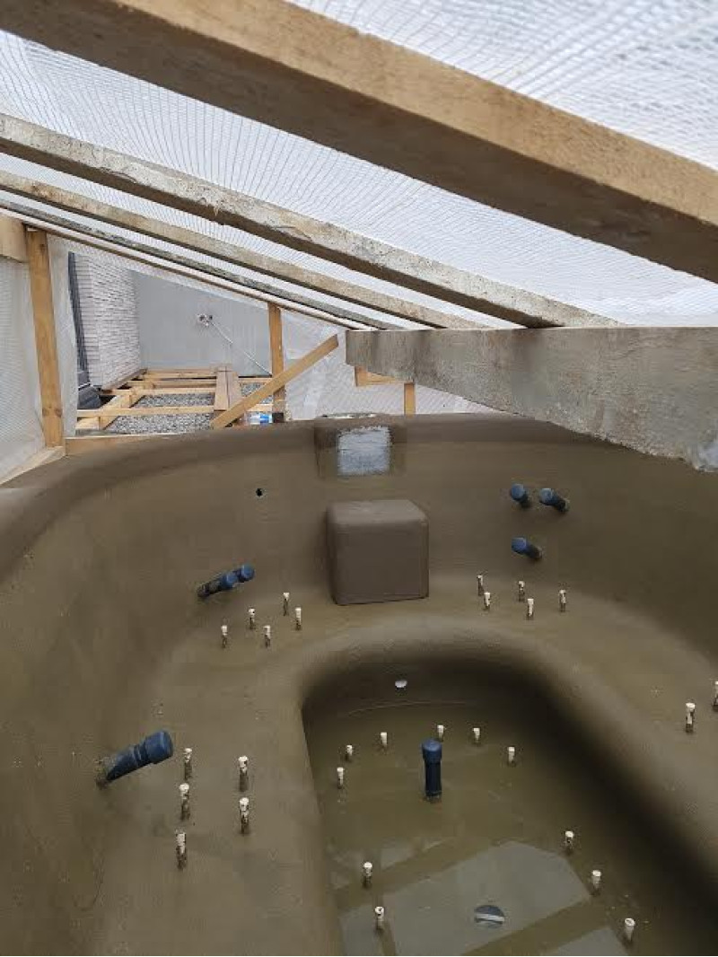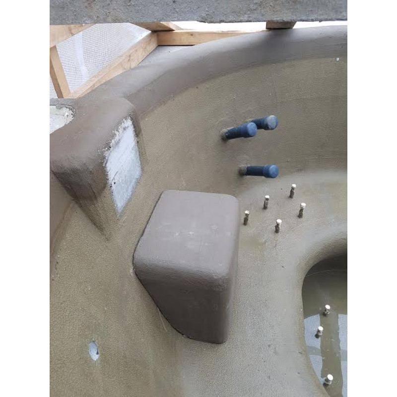 Kalupi za bazen so izdelani iz posebnega ekstrudiranega polistirena po individualnem naročilu. Notranjost je pokrita z drobljenim steklenim mozaikom.