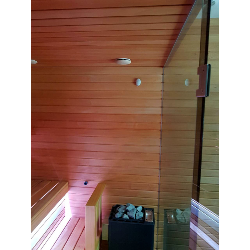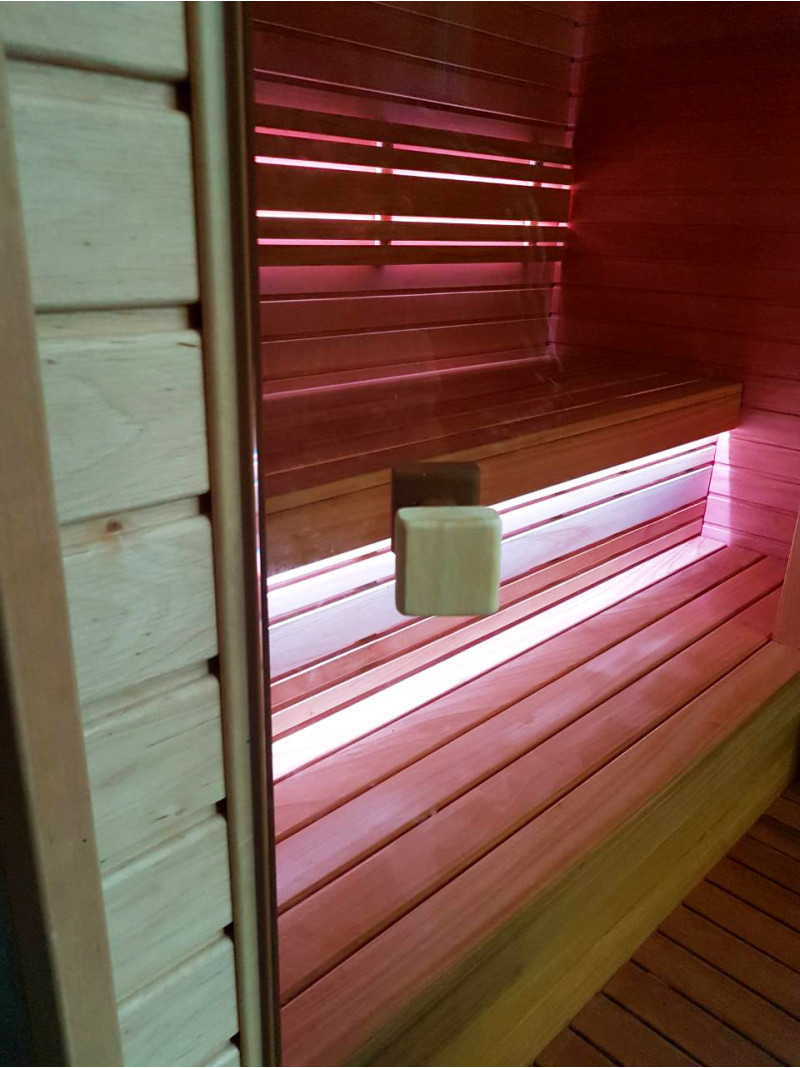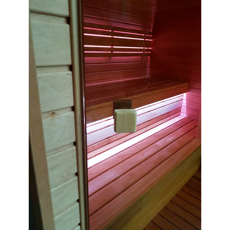 Osvetlitev savne je zelo pomemben detajl, ki daje v savni napol sproščujoč učinek. Pod klopmi in naslonjali je LED RGB barvna osvetlitev, katere barvo lahko kadar koli spremenite. Savna je opremljena tudi z optičnim sistemom bele razsvetljave "Moon".