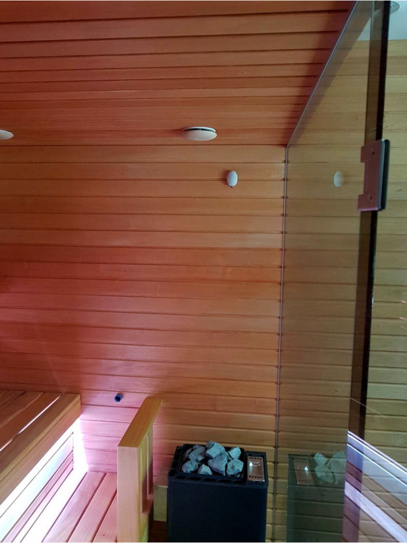Savna je opremljena z zvočniki, tako da lahko med uživanjem v savni poslušate svojo najljubšo glasbo.