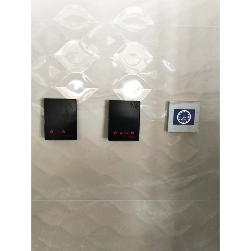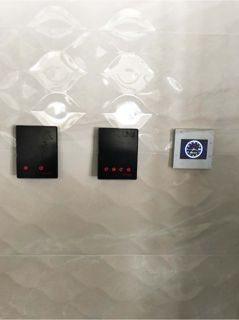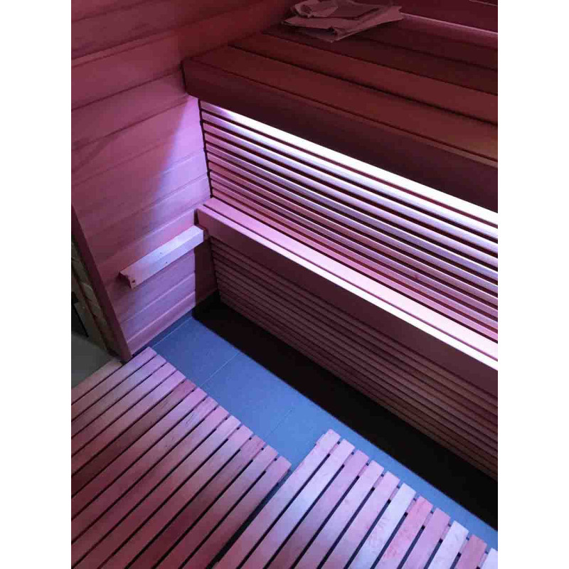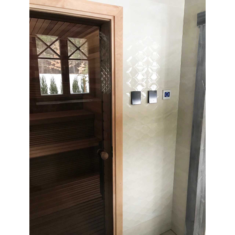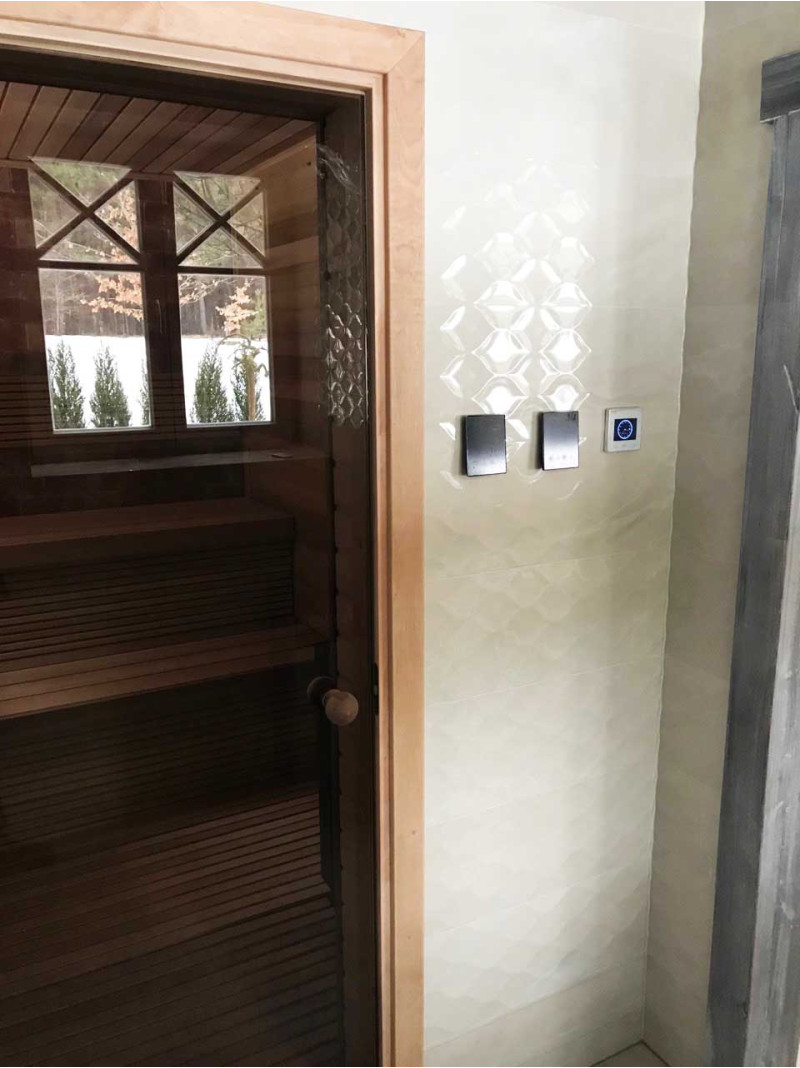 - Dve nadzorni plošči, nameščeni zunaj savne - za upravljanje dveh ločenih načinov. Nadzorna plošča Harvia Xenio Combi CX110C in infra nadzorna plošča Harvia CX36I.