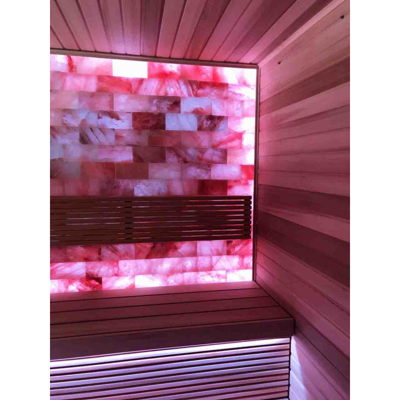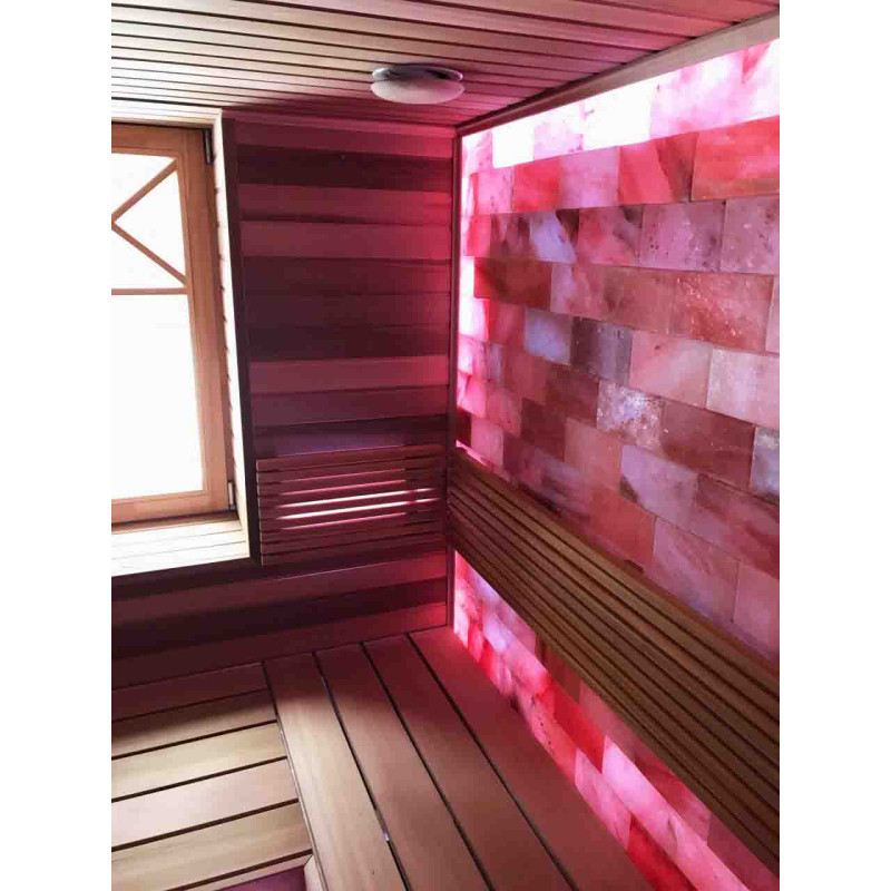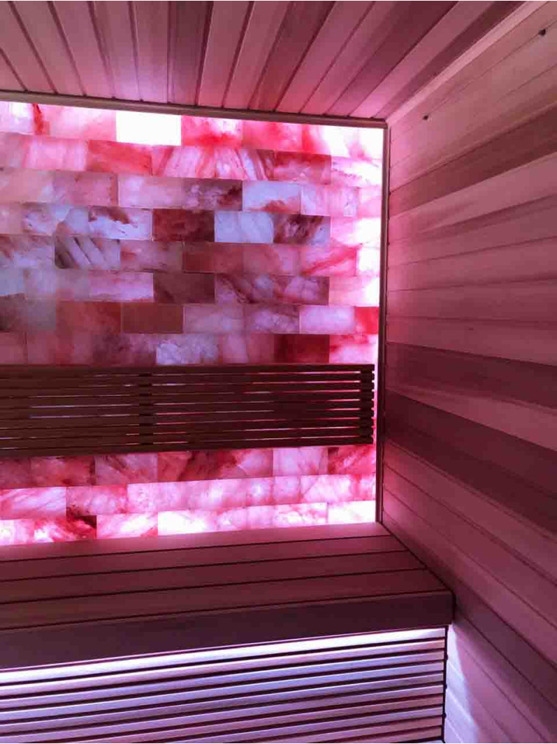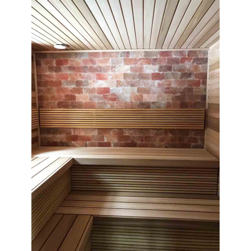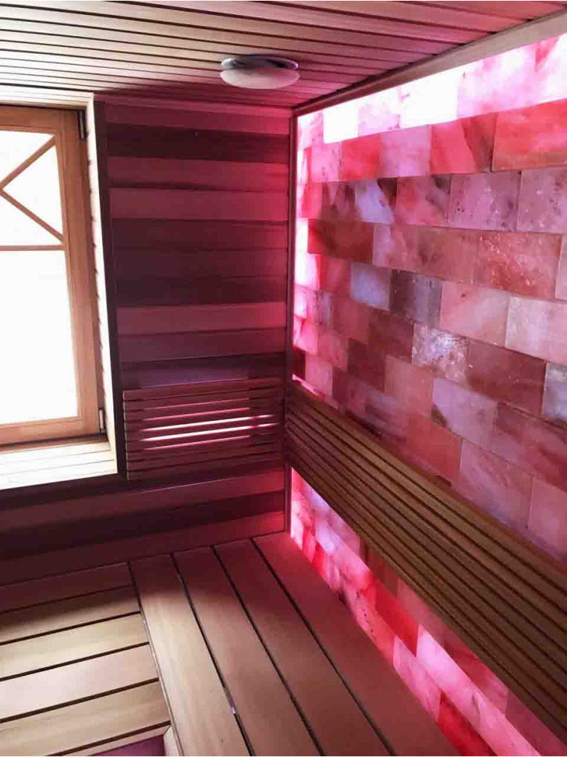 Kakovost zraka in občutke savne močno povečuje velika stena himalajskih soli. Izpuščeni negativni ioni krepijo zdravje, pomagajo pri premagovanju številnih bolezni, kot so: bronhialna astma, pljučna in bronhialna obolenja, postinfarkt, hipertenzija, čir na prebavilih, gastritis, bolezni ščitnice, dermatitis, različne alergije, živčne bolezni, pomaga pri premagovanju stresa. Prednosti izvajanja postopkov v takšni savni so dvojne.
