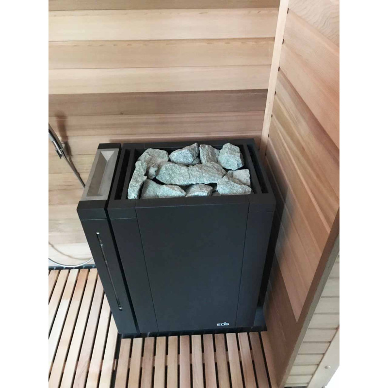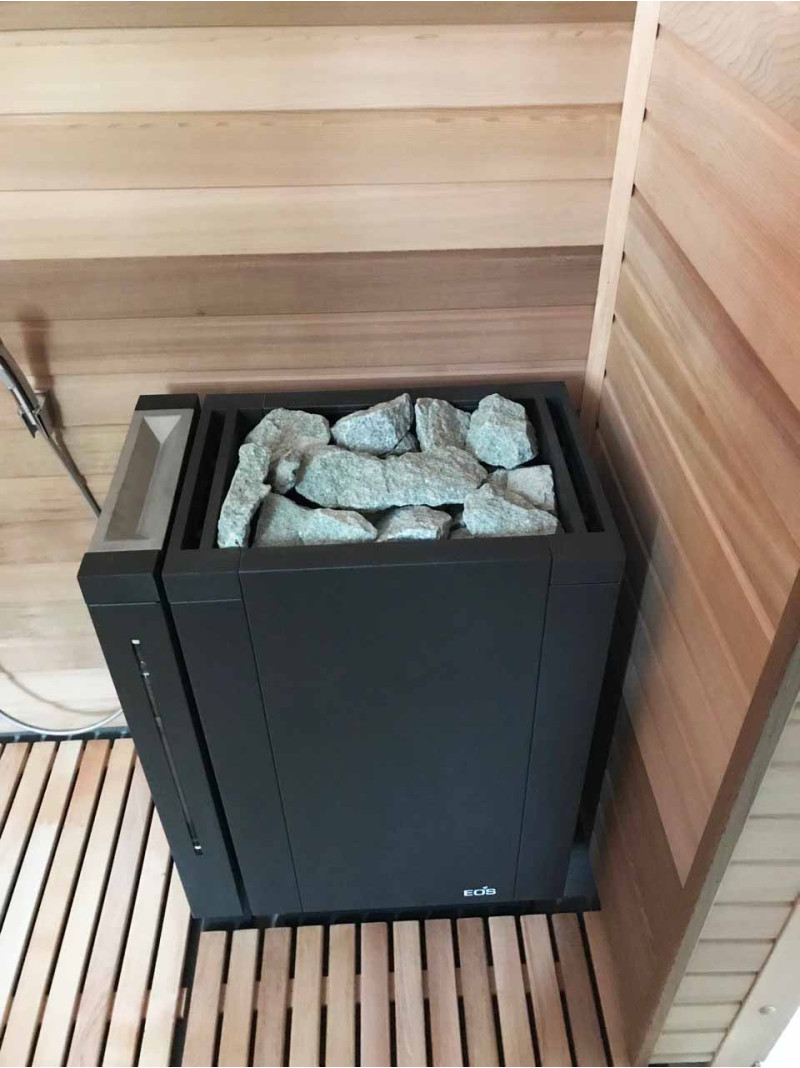 - Električna pečica EOS Mythos S45 Vapor z generatorjem pare. Pečica zadrži do 45 kg žadnih kamnov. Ta količina zadostuje za vzdrževanje konstantne temperature in udobno uživanje v savni. Priročno vzdrževanje - kamni se ne dotikajo grelnih elementov. Lahko jih zamenjate, ne da bi odstranili kamne.