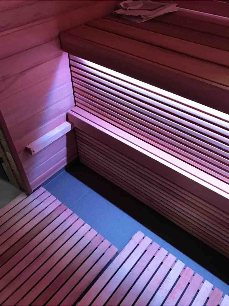 - Glasbeni center, vdolben v steno z barvnim LCD zaslonom. Primerno za uporabo v savni. Priloženi so zvočniki, odporni na vlago in toploto. Upravlja se z gumbi ali daljinskim upravljalnikom.