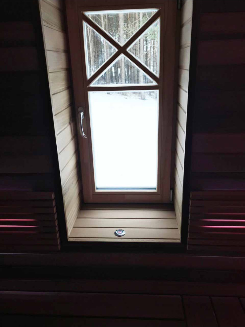 - Notranje obloge in ležalniki iz najkakovostnejšega lesa cedre - ogenj, ki ne gori. Postelje iz nestandardnih širših desk - za udobnejše kopanje. Zaščita naslonjala in ohišja pečice - jermeni abachi.