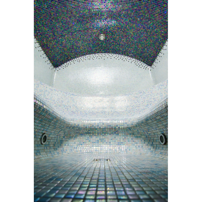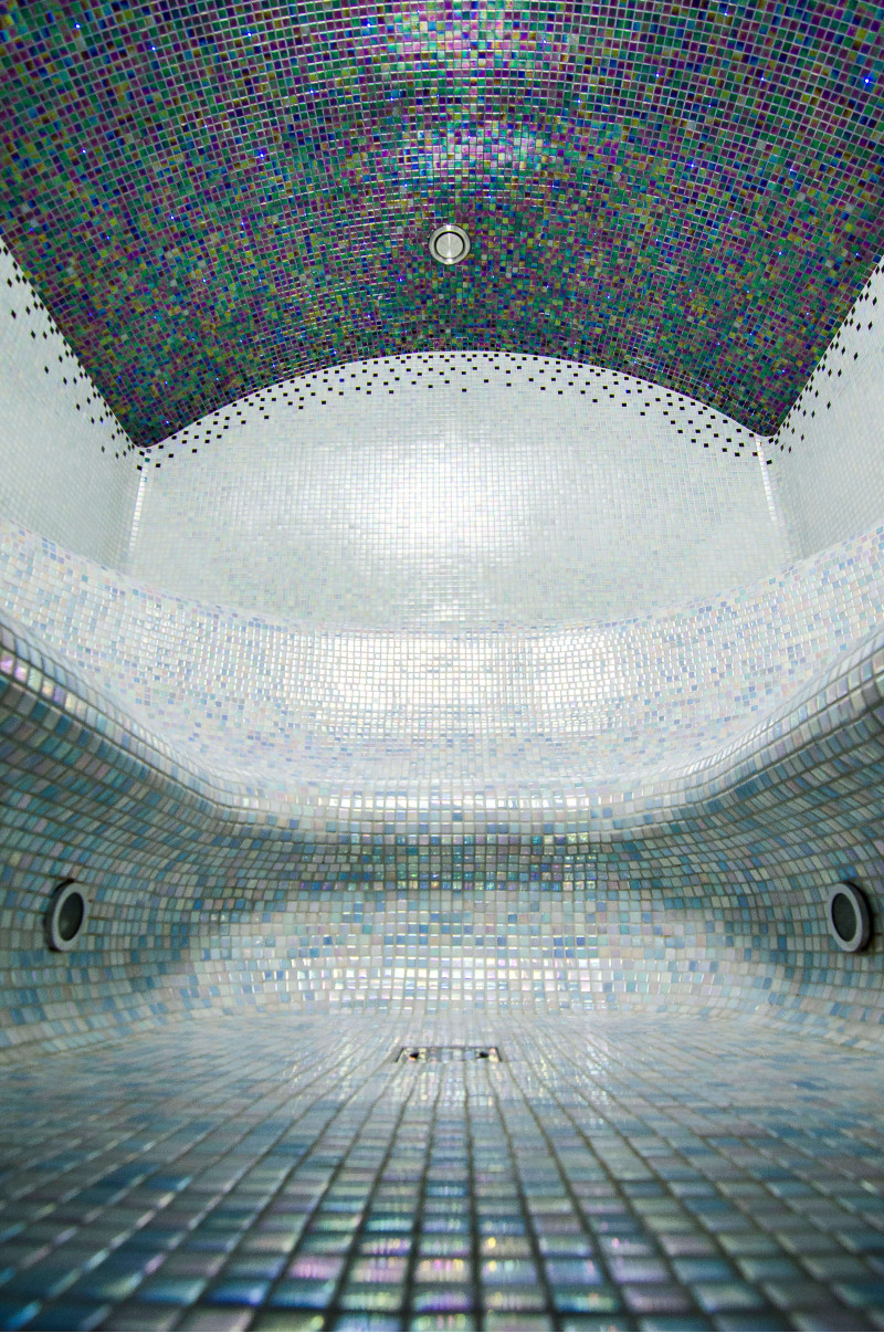 Klopi, tla in stene so okrašeni z mozaičnimi ploščicami pastelnih barv. Strop je pokrit z barvnimi ploščicami, ki skupaj s stropno razsvetljavo dajejo še bolj impresiven razgled.