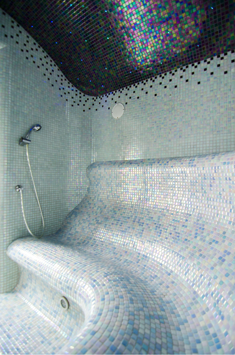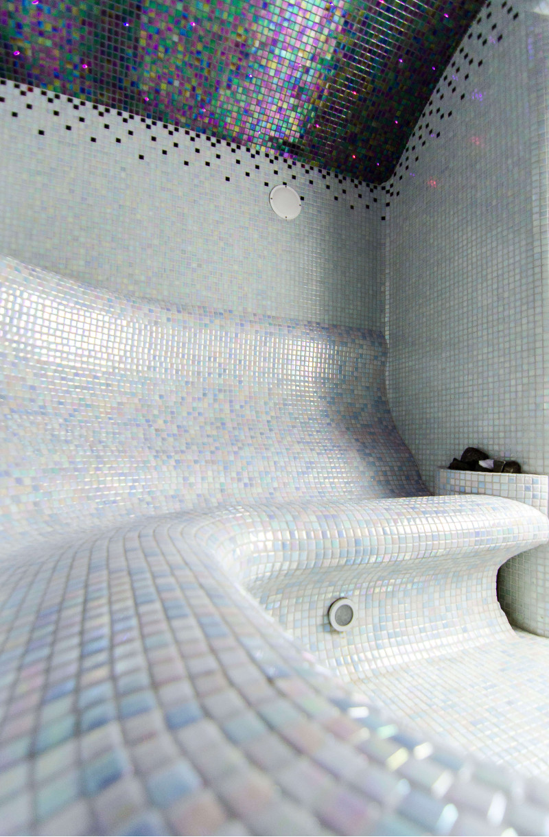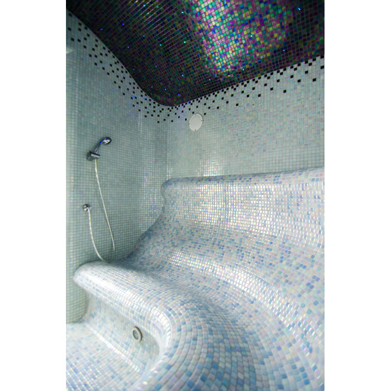 Klopi za parno savno, stene in stropi so izdelani individualno iz posebnega ekstrudiranega polistirena. Stropi so v obliki loka, značilni za vsako parno sobo, tako da se na njih ne nabira parni kondenz. Sedeči položaji, ukrivljene udobno oblikovane klopi za prijeten počitek v savni. Klopi so odcedne, da se na njih ne nabira znoj in vlaga.