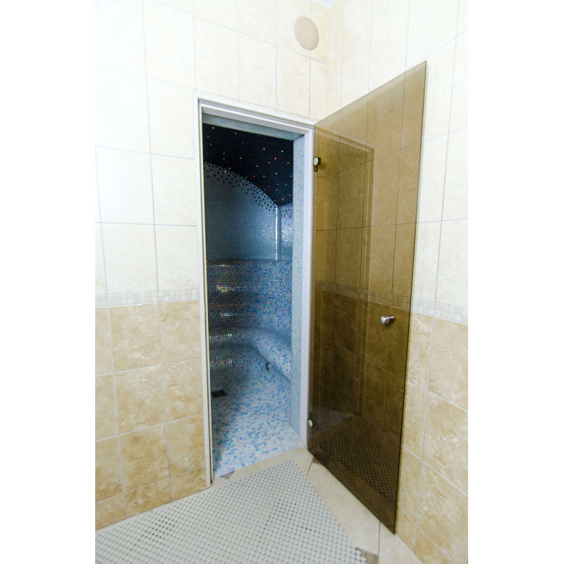 Steklena vrata izdelujemo po individualnem naročilu. Vrata so odporna na vlago in temperaturna nihanja. Okvir vrat - marmor.