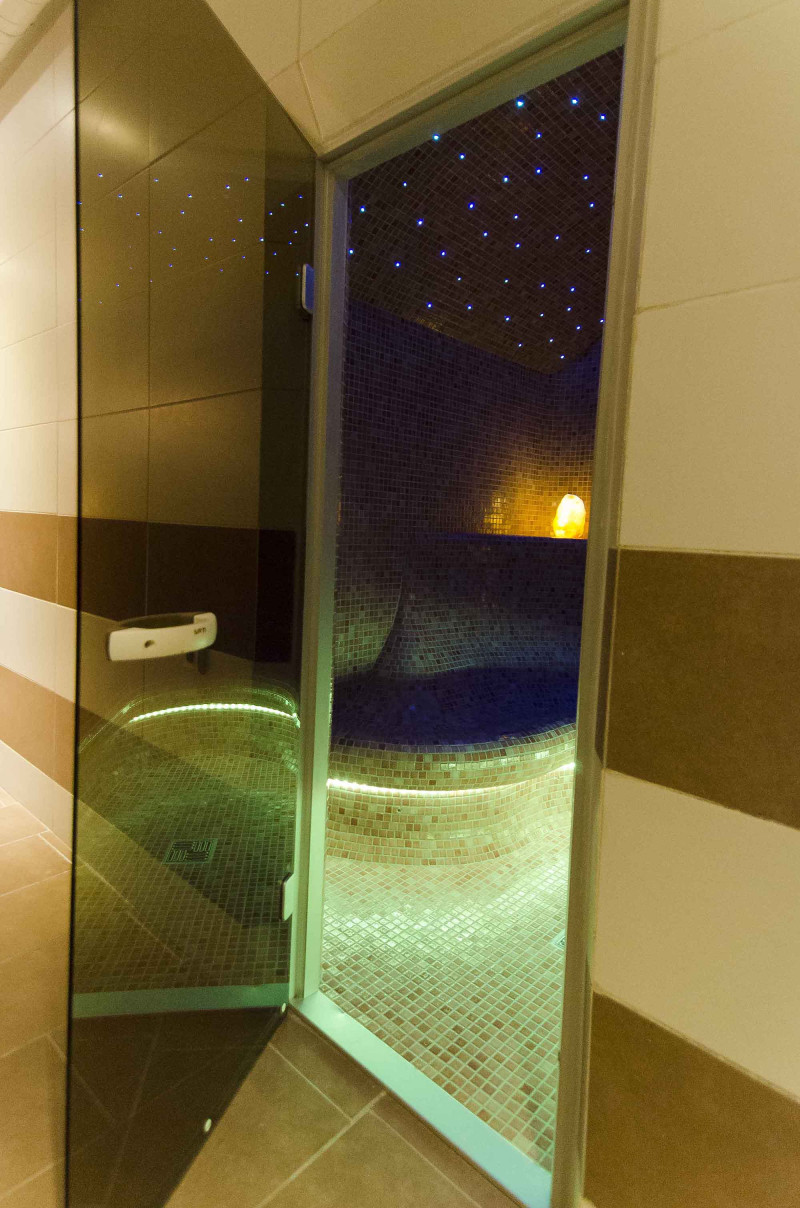 Klopi za parno savno, stene in stropi so izdelani iz posebnega ekstrudiranega polistirena po individualnem projektu. Stropni loki so oblikovani tako, da kondenzat pare, ki se na njih nabira, ne kaplja na ljudi, ki uživajo v savni.