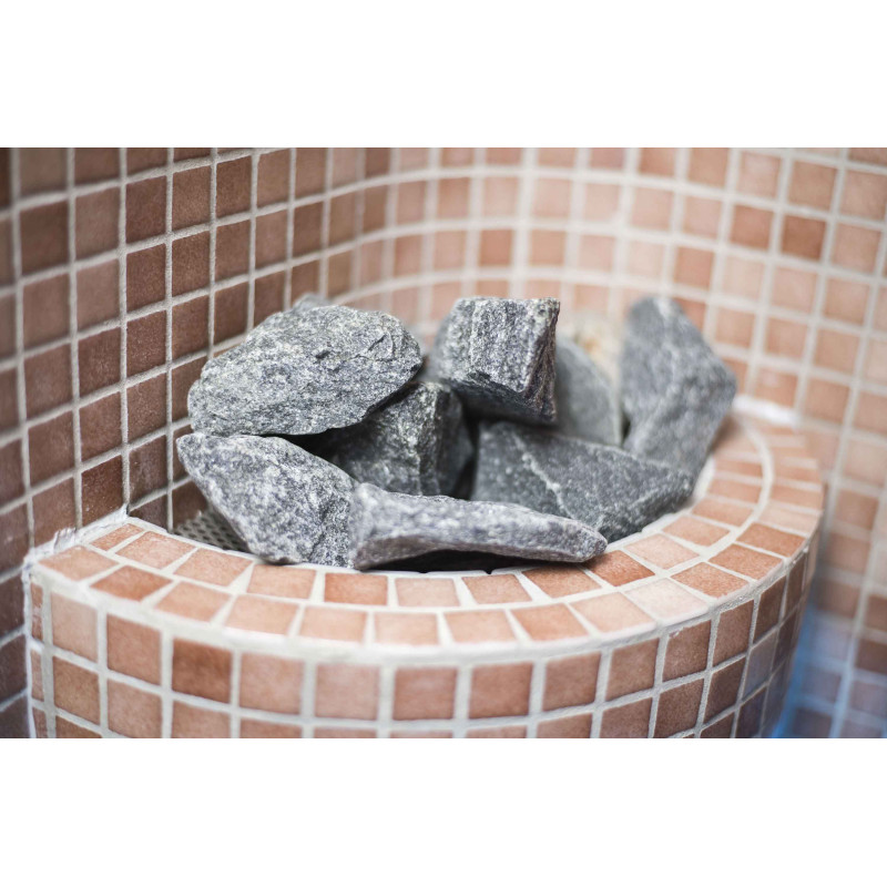 Savna je opremljena s parno vazo, ki opravlja funkcijo parne zaščitne cevi, skozi katero vstopa para v savno. Okrašena z olivin diabaznimi kamni.