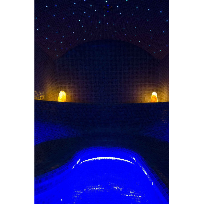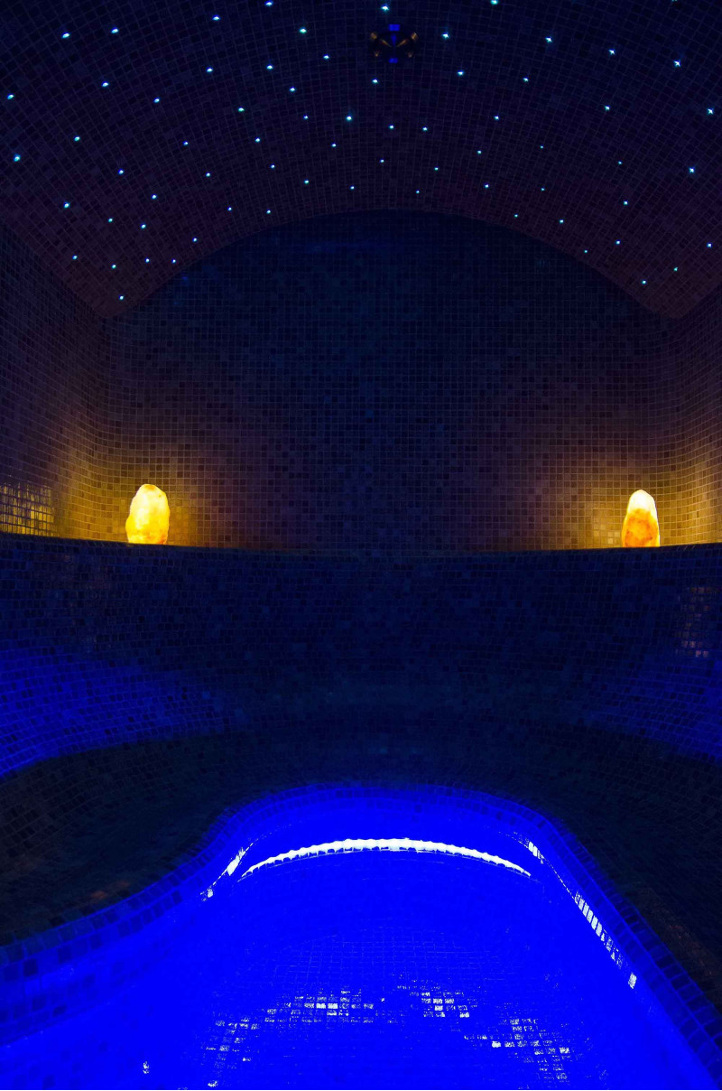 Savna je okrašena s svetilkami iz himalajske soli, ki ne zagotavljajo le svetlobe in udobja, ampak so tudi koristne za zdravje. Ogreti kristali soli oddajajo negativne ione, ki delujejo kot uravnavalec in ustvarjajo naravno klimo, na primer v gorah, blizu morja ali pri slapovih.