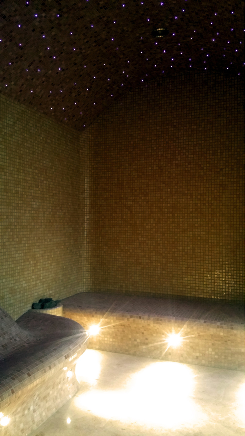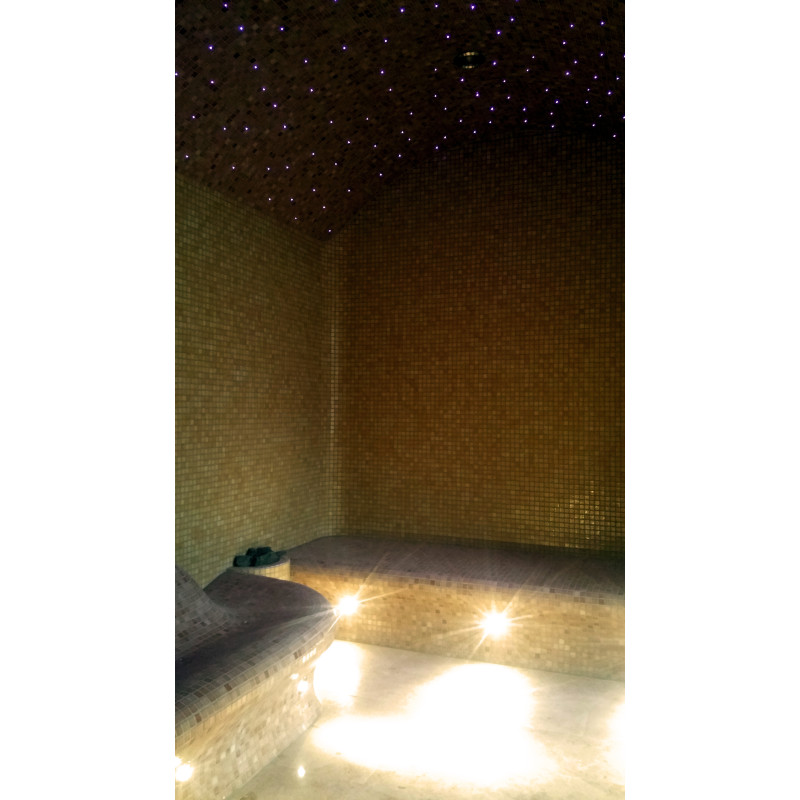Sistem razsvetljave iz optičnih vlaken za strop - "zvezdno nebo". Pod klopmi je predvidena LED osvetlitev za osvetlitev tal.