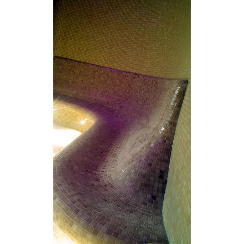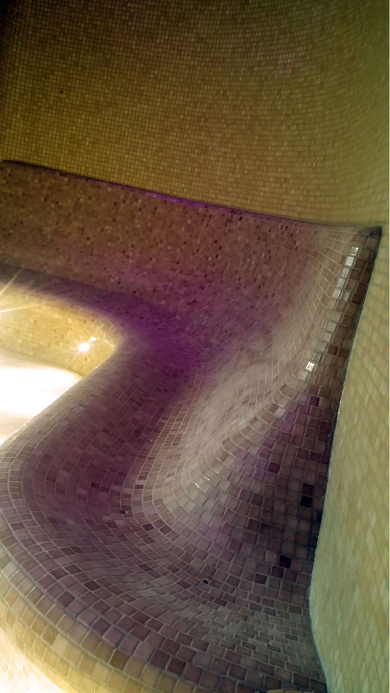 Dodelava - tla, stene, klopi okrašene z drobljenim steklenim mozaikom.