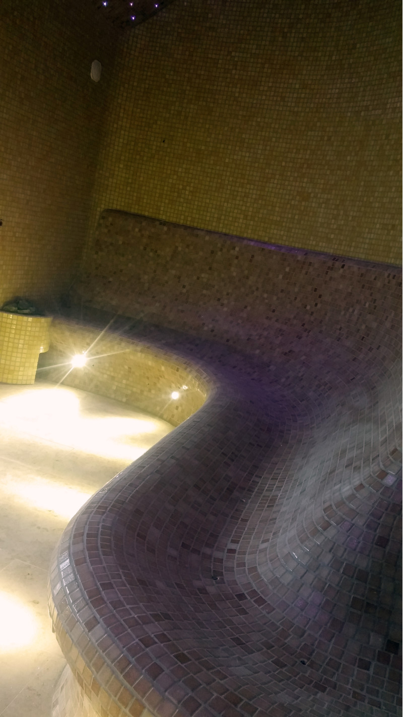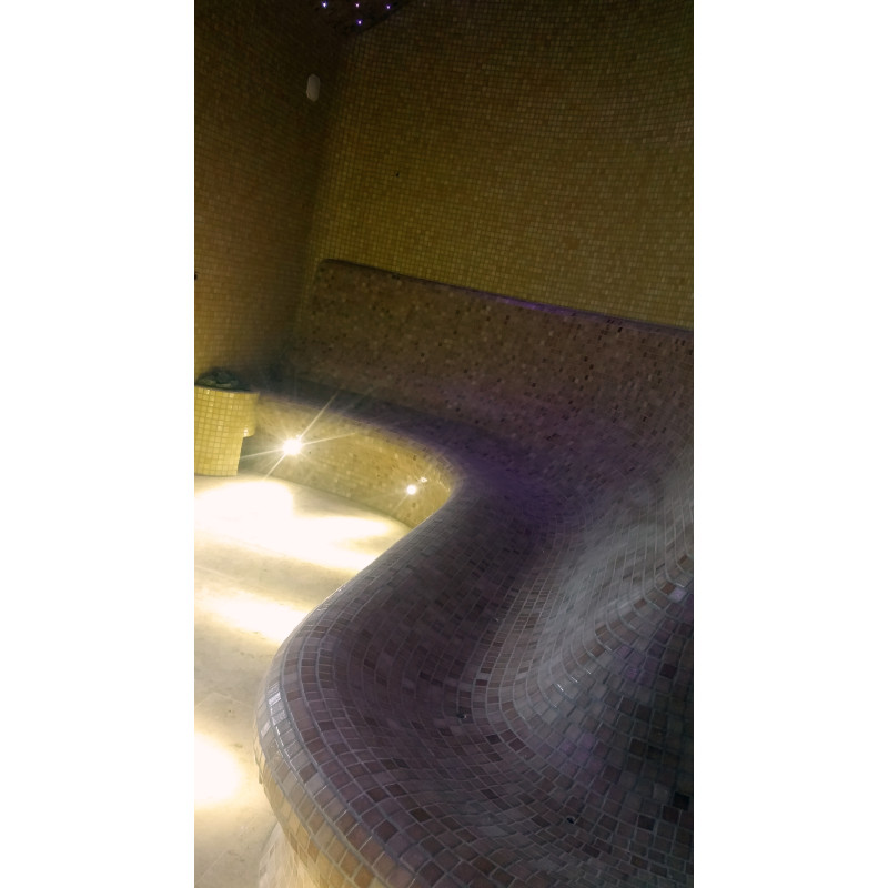 Klopi za parno savno, stene in stropi so izdelani individualno iz posebnega ekstrudiranega polistirena.