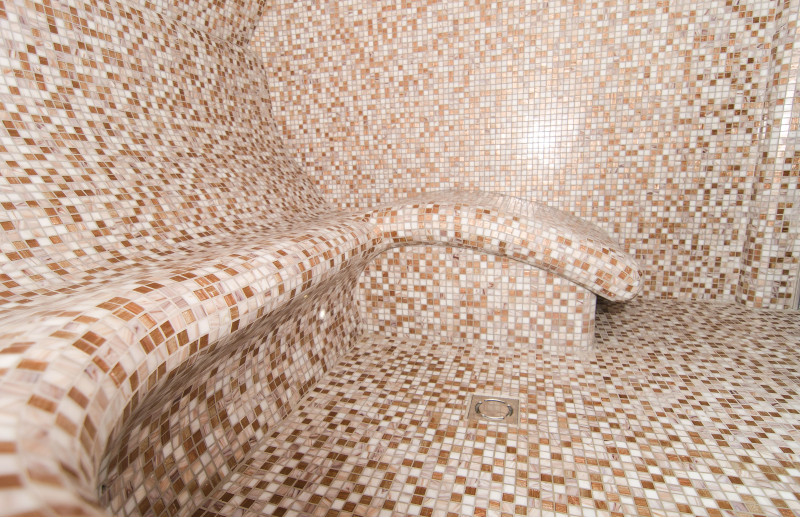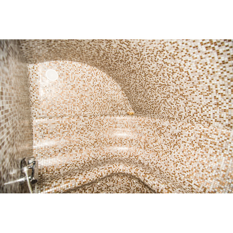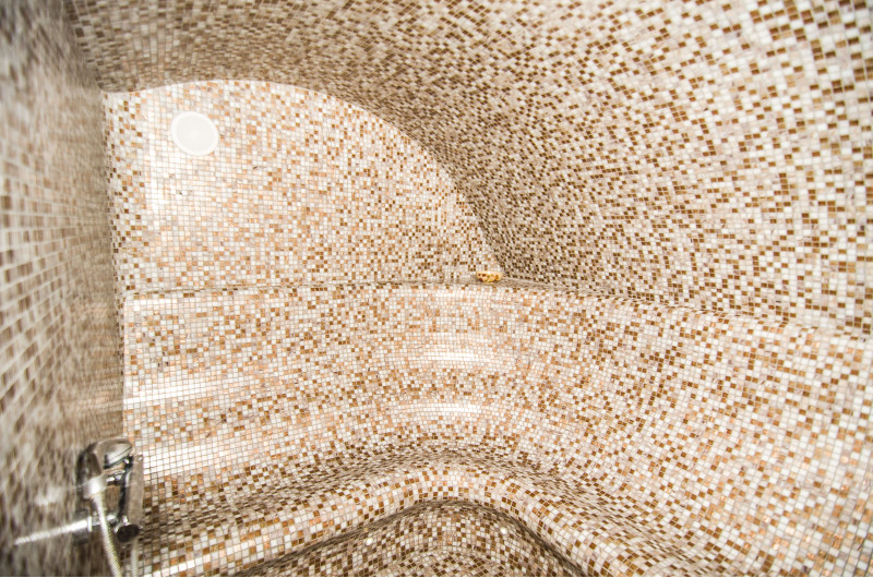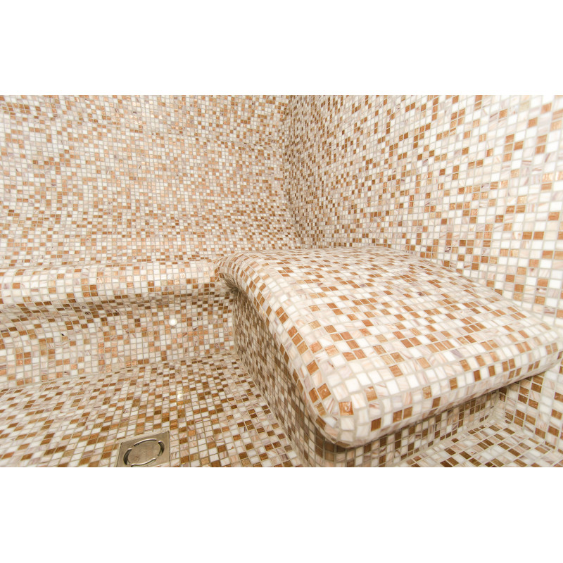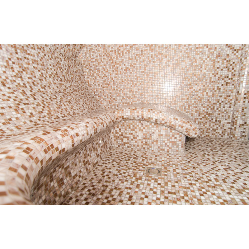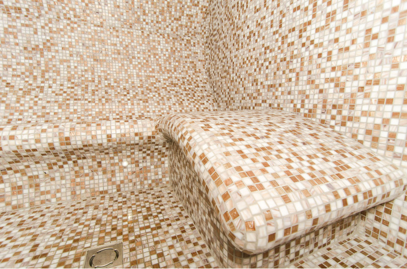 Klopi za parno savno, stene in stropi so izdelani individualno iz posebnega ekstrudiranega polistirena. Strop je ločne oblike, značilne za vse parne savne.