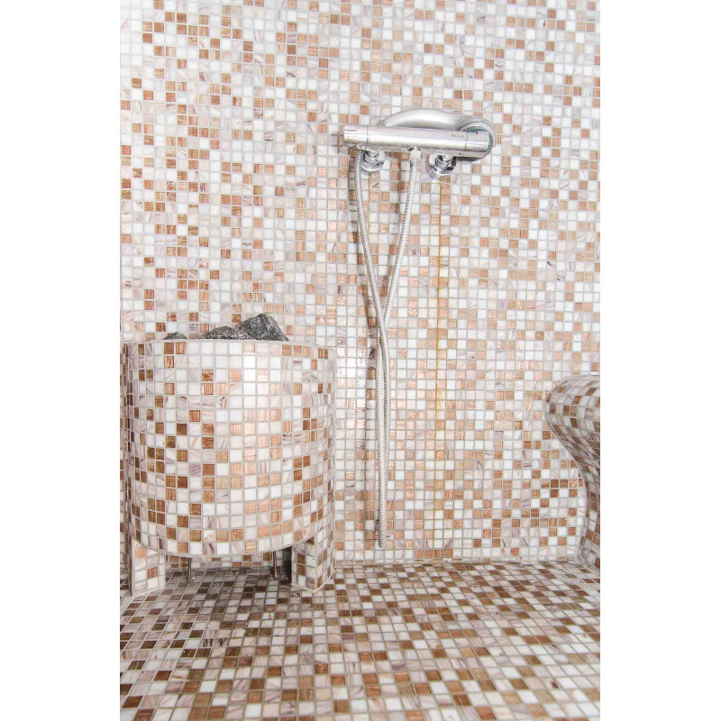 Zaključek - mozaik iz drobljenega stekla nevtralne barve.