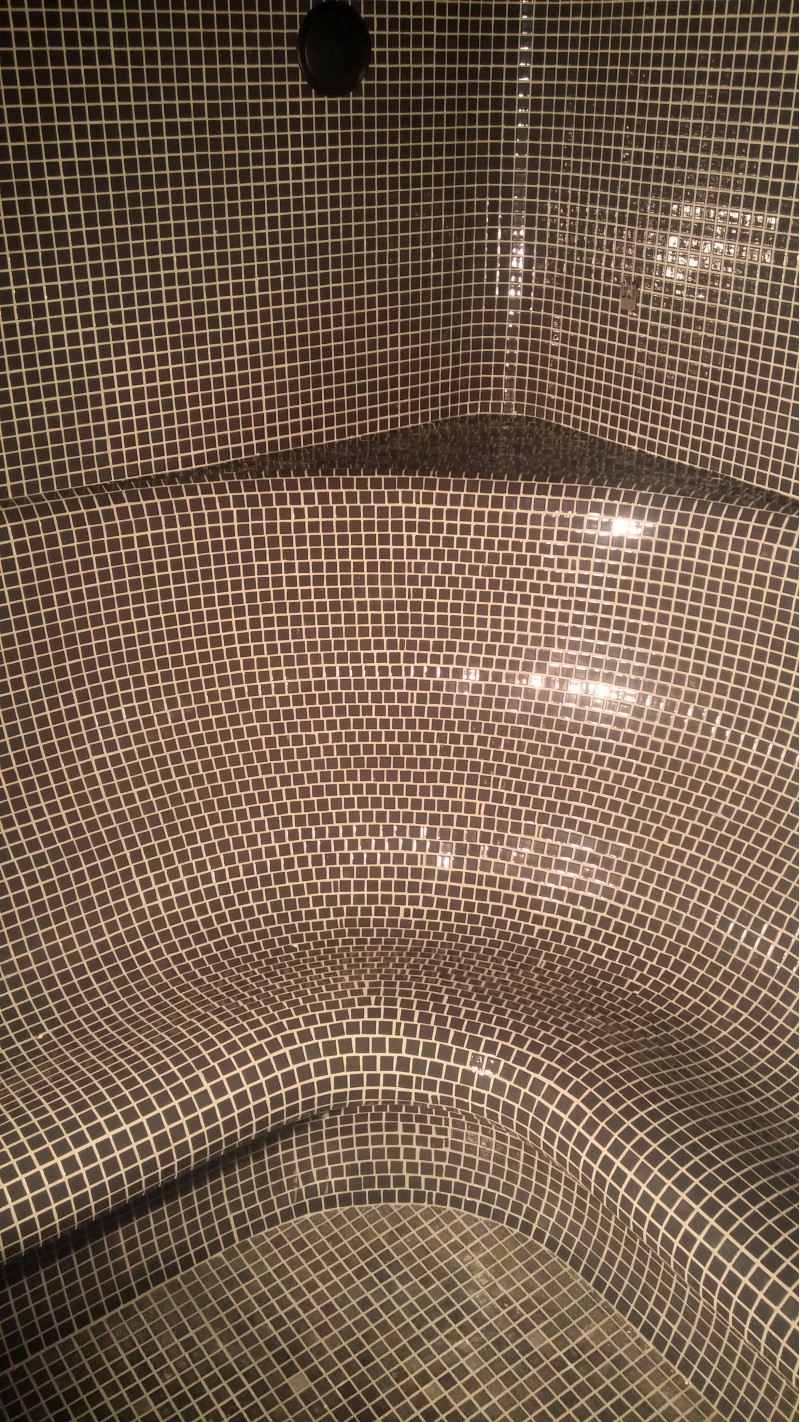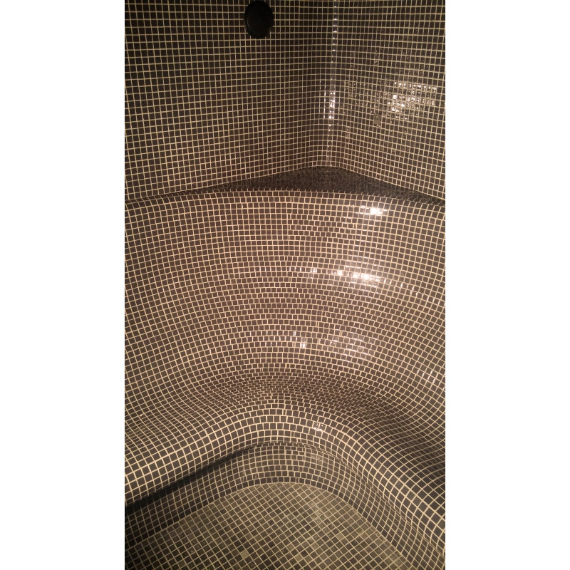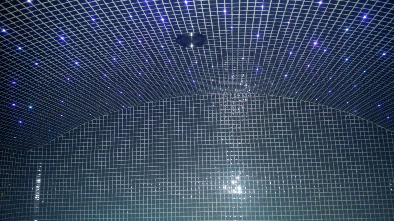 Končna obdelava - celotna savna je okrašena z drobljenimi steklenimi mozaičnimi ploščicami.