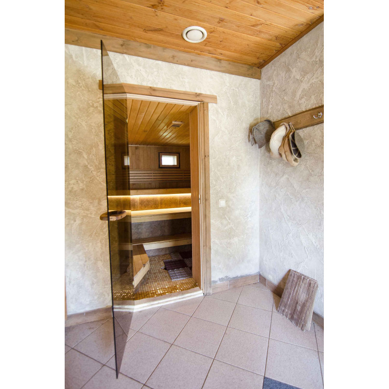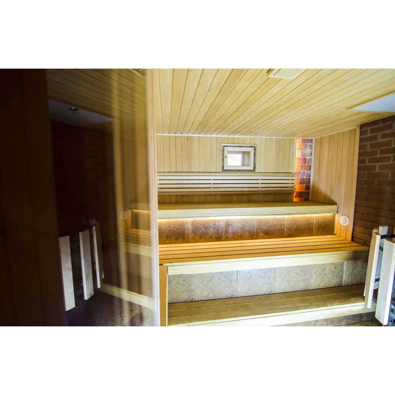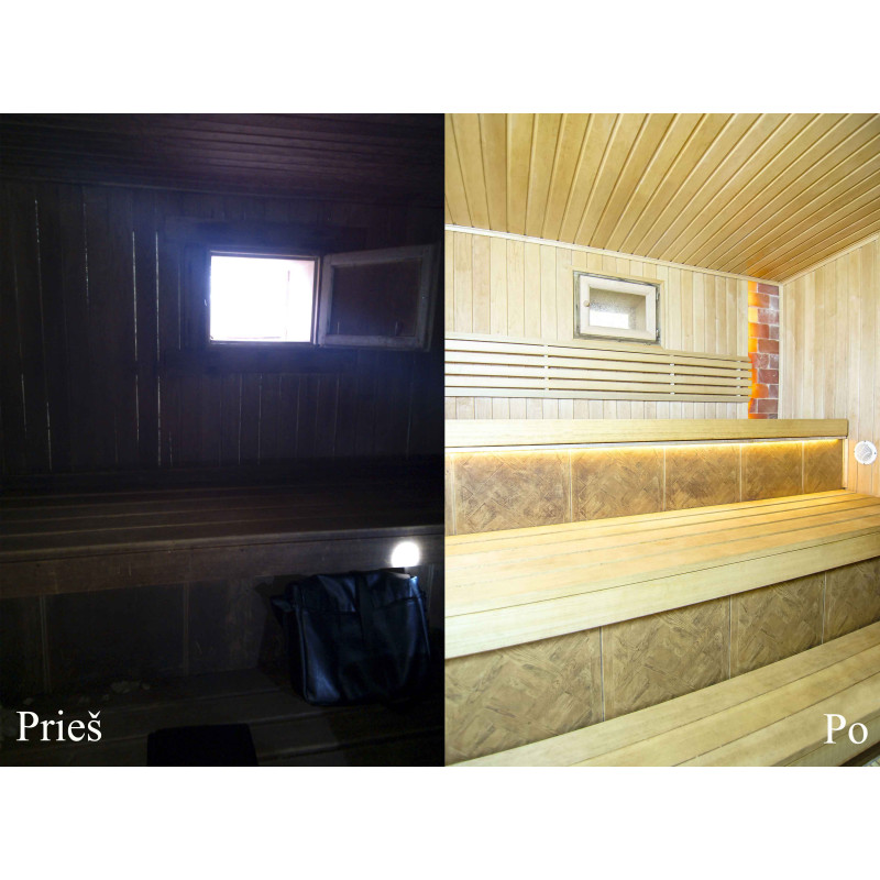 Zamenjano okno - leseni okvir, kaljeno steklo. Obrabljena vrata savn so zamenjana z novimi - posebej zasnovana za savne s kaljenim steklom in lesenim okvirjem. To steklo je toplotno obdelano, 5-krat močnejše od običajnega. Okvir je izdelan iz posebej pripravljenega lesa, ki preprečuje deformacijo okvirja zaradi nihanja temperatur.