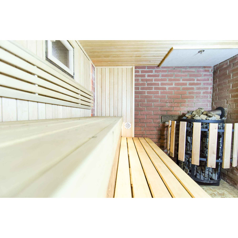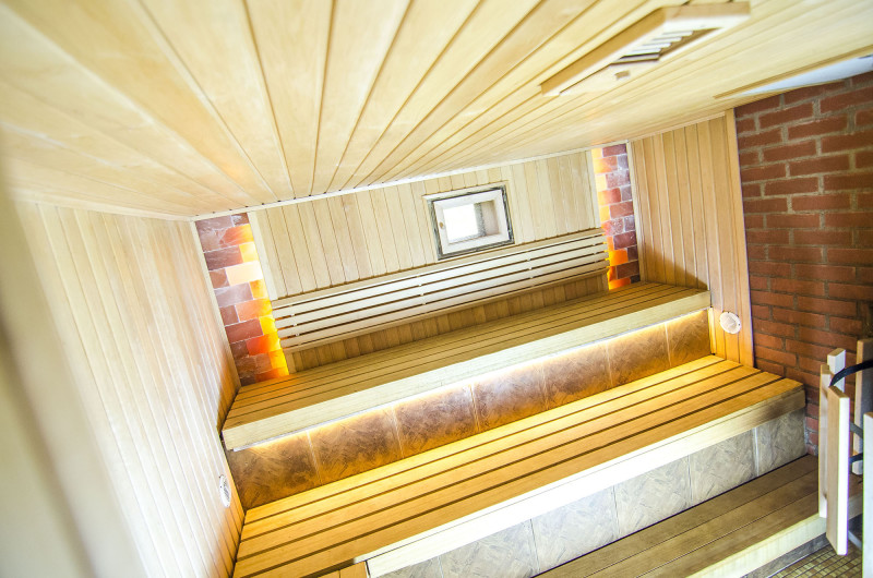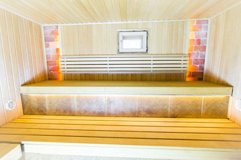 Za stene in strope je bila izbrana široka črna jelša. Klopi so bile izdelane iz visokokakovostnega lesa abachi, ki ne greje, tako da je na takih klopeh lepo sedeti ali ležati, ne da bi si opekli kožo. Pod klopi je nameščena LED razsvetljava.