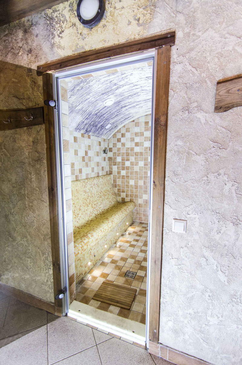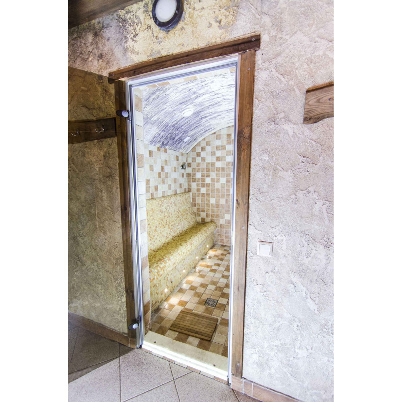 Vrata s starim lesenim okvirjem so zamenjali s primernimi za parno savno - z aluminijastim okvirjem, zatemnjenim, kaljenim steklom. Ta vrsta vrat in okvirja je odporna na toploto in vlago, temperaturna nihanja, se ne izkrivlja.