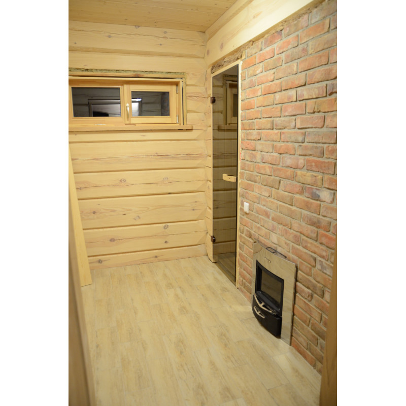 Stene so okrašene z apnom in žgano trepetliko z najkakovostnejšimi lesenimi oblogami.