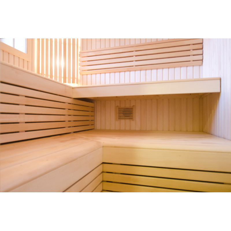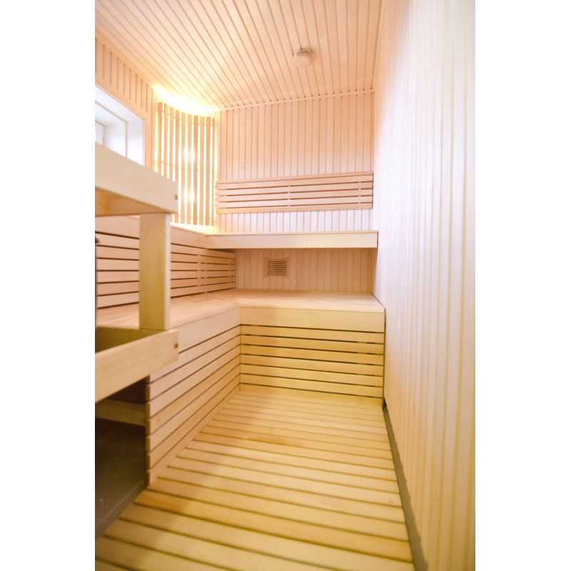 Stenske obloge in klopi so izdelane iz najkvalitetnejšega lipovega lesa. Les je izjemno lahek, kar daje savni občutek prostora.
