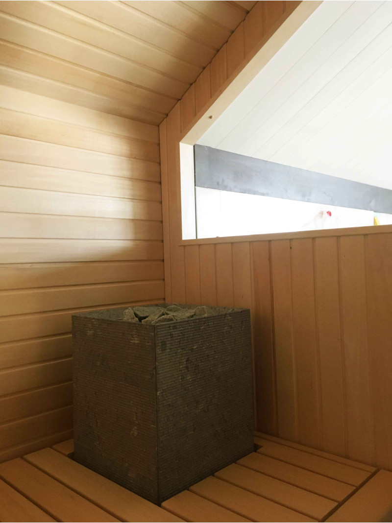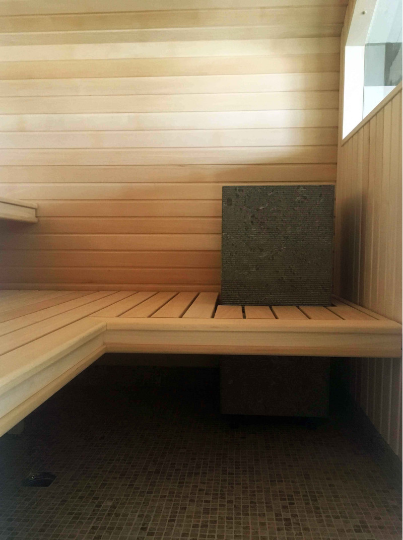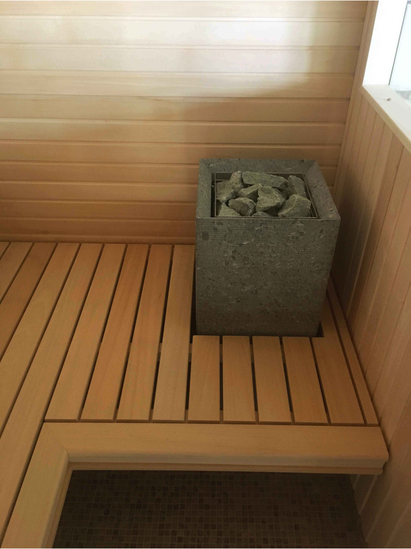 Vgrajeni so bistveni elementi savne – prezračevalne rešetke savne in difuzor.