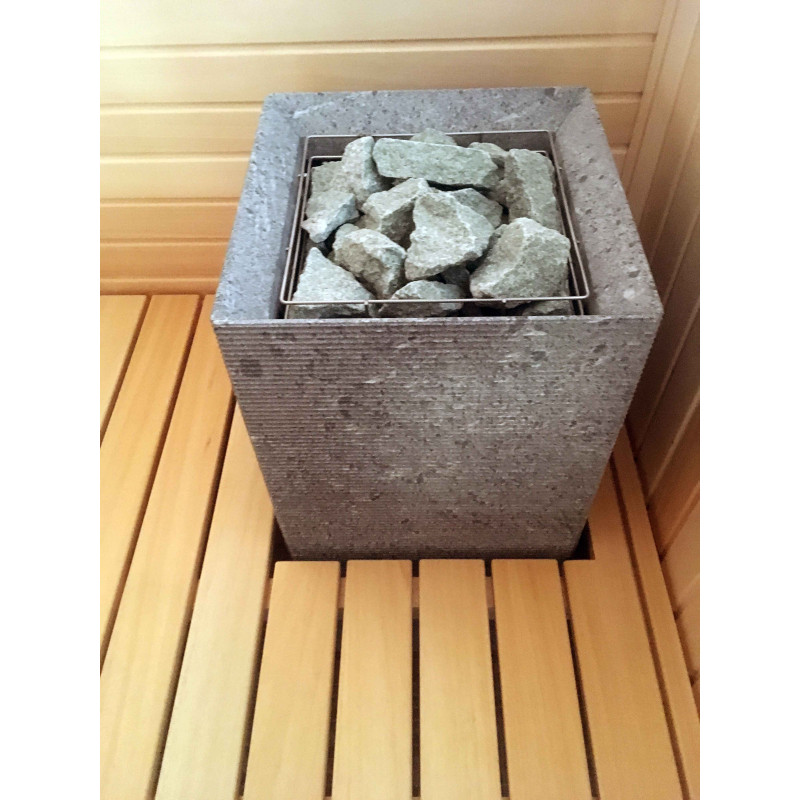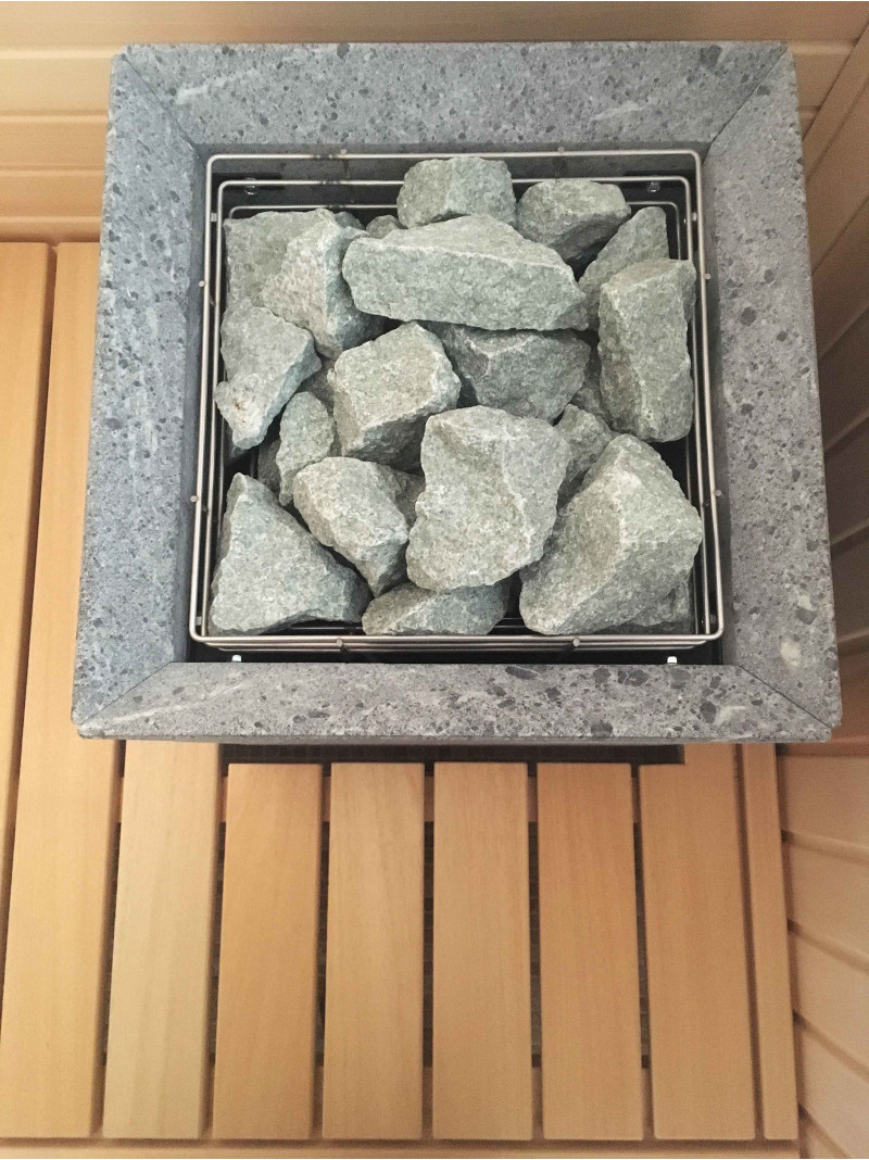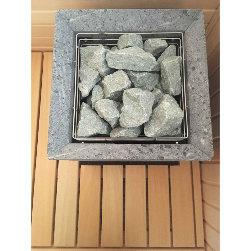 Električni grelec Tulikivi Tuisku z zaključkom iz milnice. Upravlja se z daljinskim upravljalnikom. Napolnjena z veliko mešanico olivin diabaza in jadeitnih kamnov. Zaradi kratkih varnostnih razdalj do vnetljivih površin in zelo negreljive površine grelnika je to dobra izbira za družine z otroki in za vgradnjo grelnika v klopi. Energija, ki jo sprosti jadeit, ima zdravilne moči za številne bolezni. Zdravilne lastnosti segretega jadeita se povečajo. Prelivanje kamna z vodo širi prijeten vonj čistega okolja v savni in olajša dihanje.