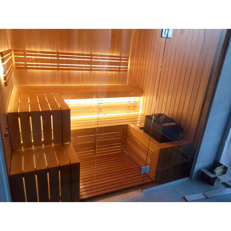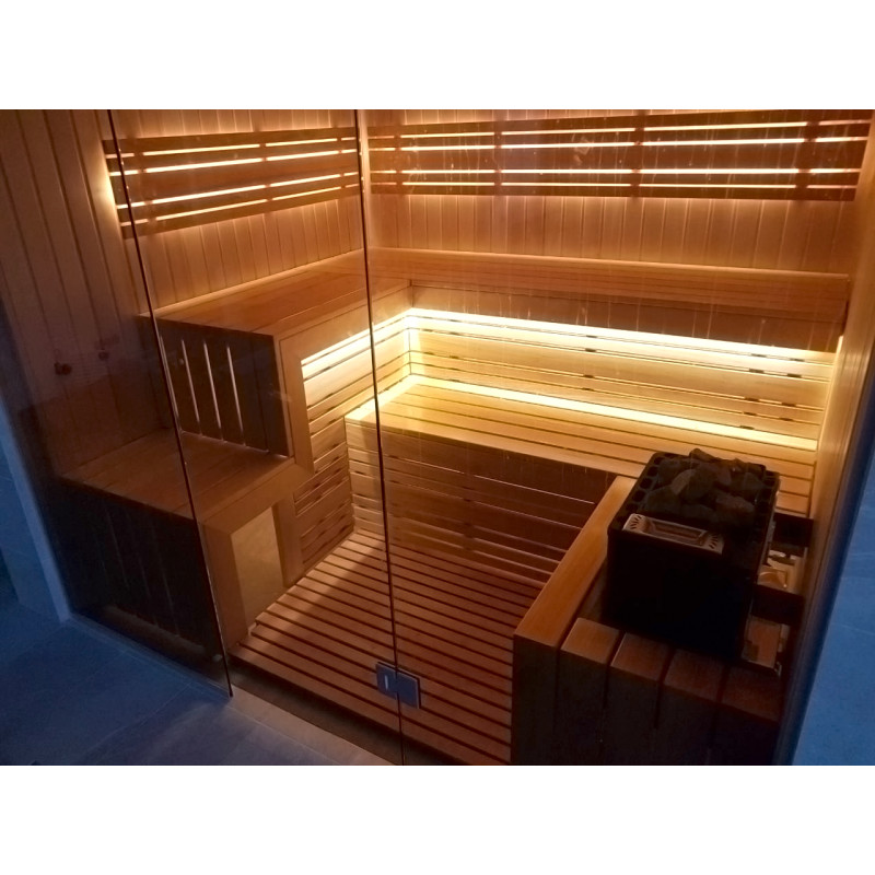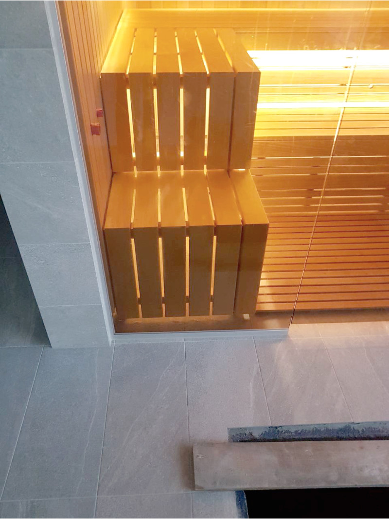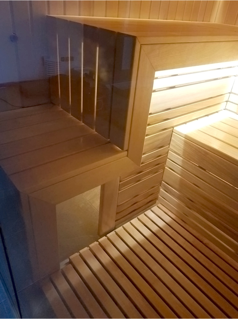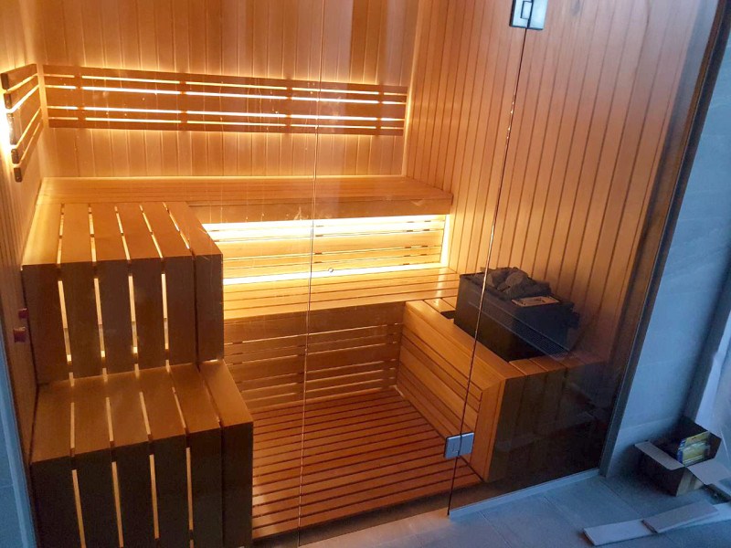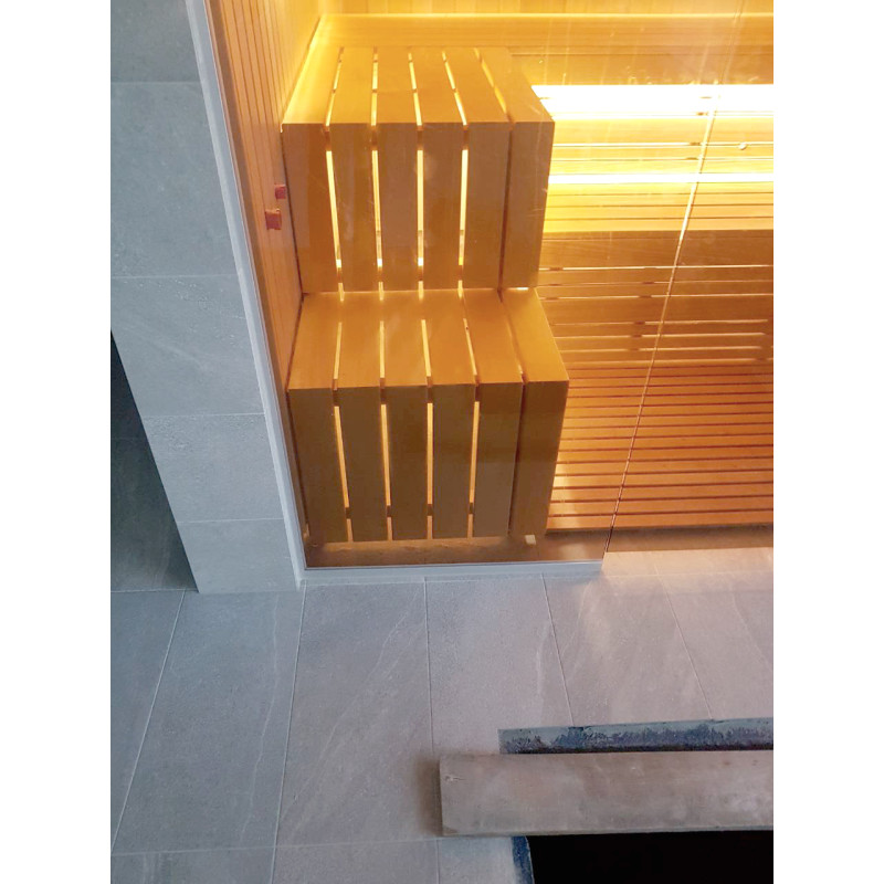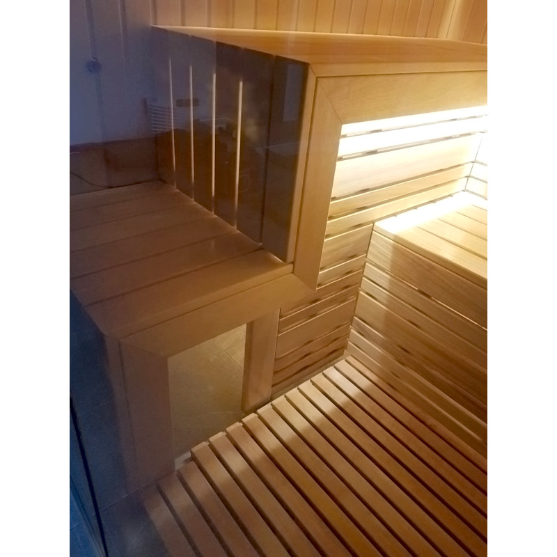 Za stene in strop savne je bila uporabljena lahka lipa. Ti tiru izžarevajo prijeten, naraven vonj po lesu, se ne skrčijo pred vročino in ne izgubijo svojega elegantnega videza.