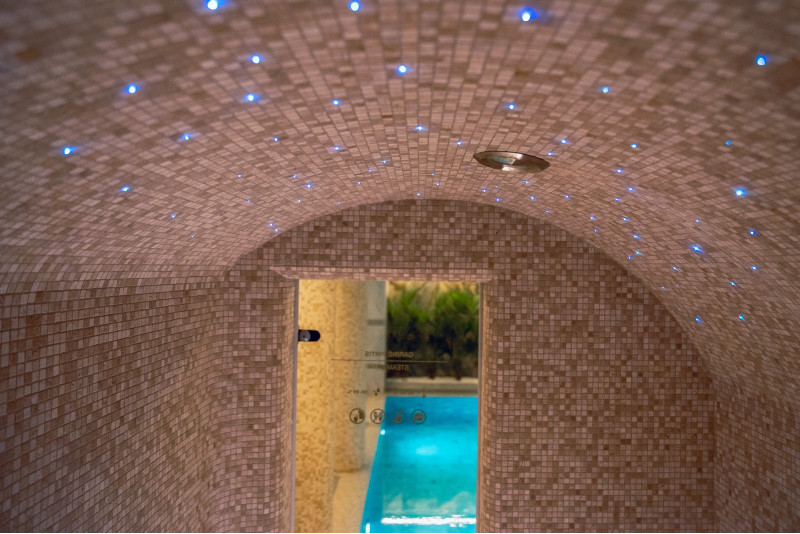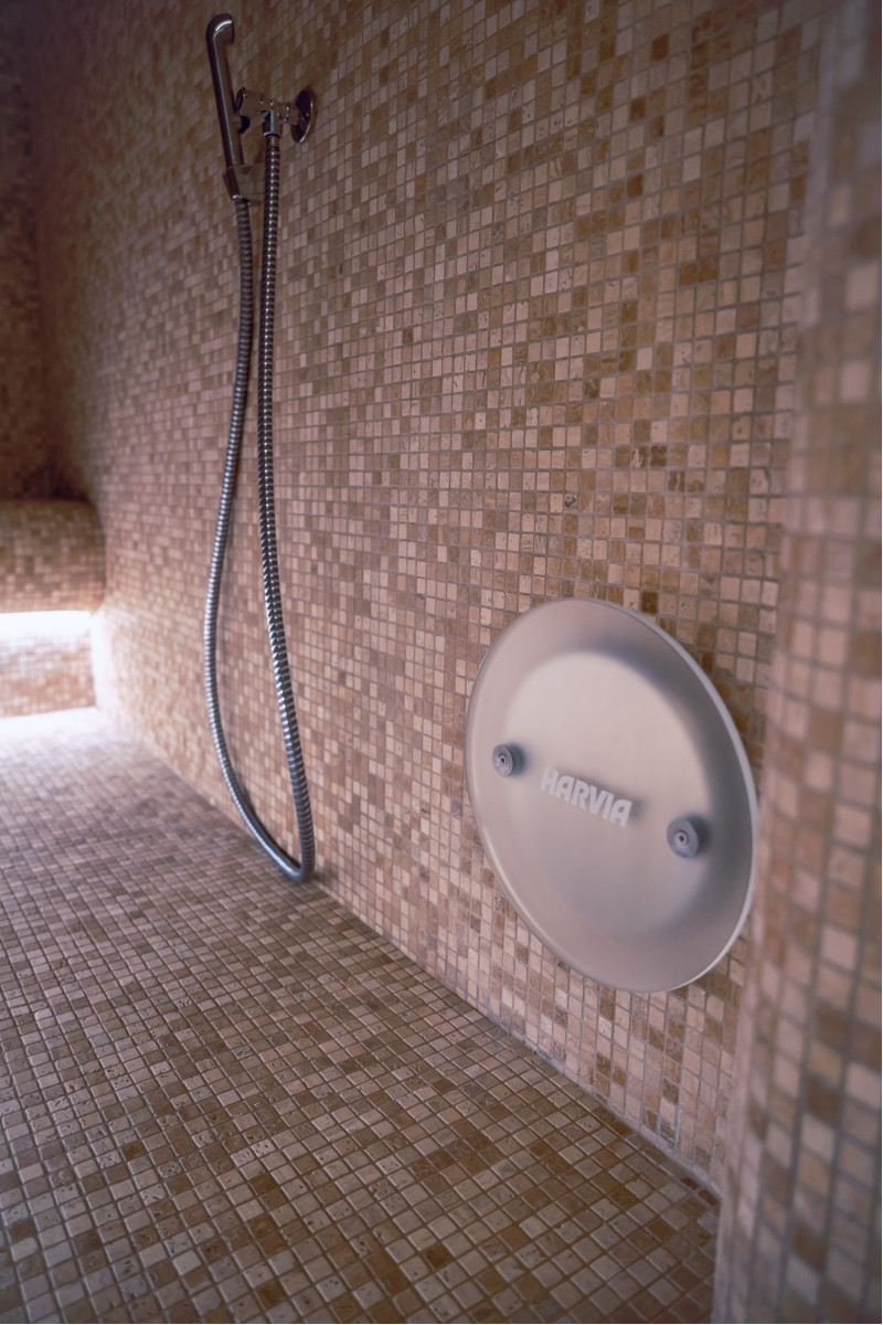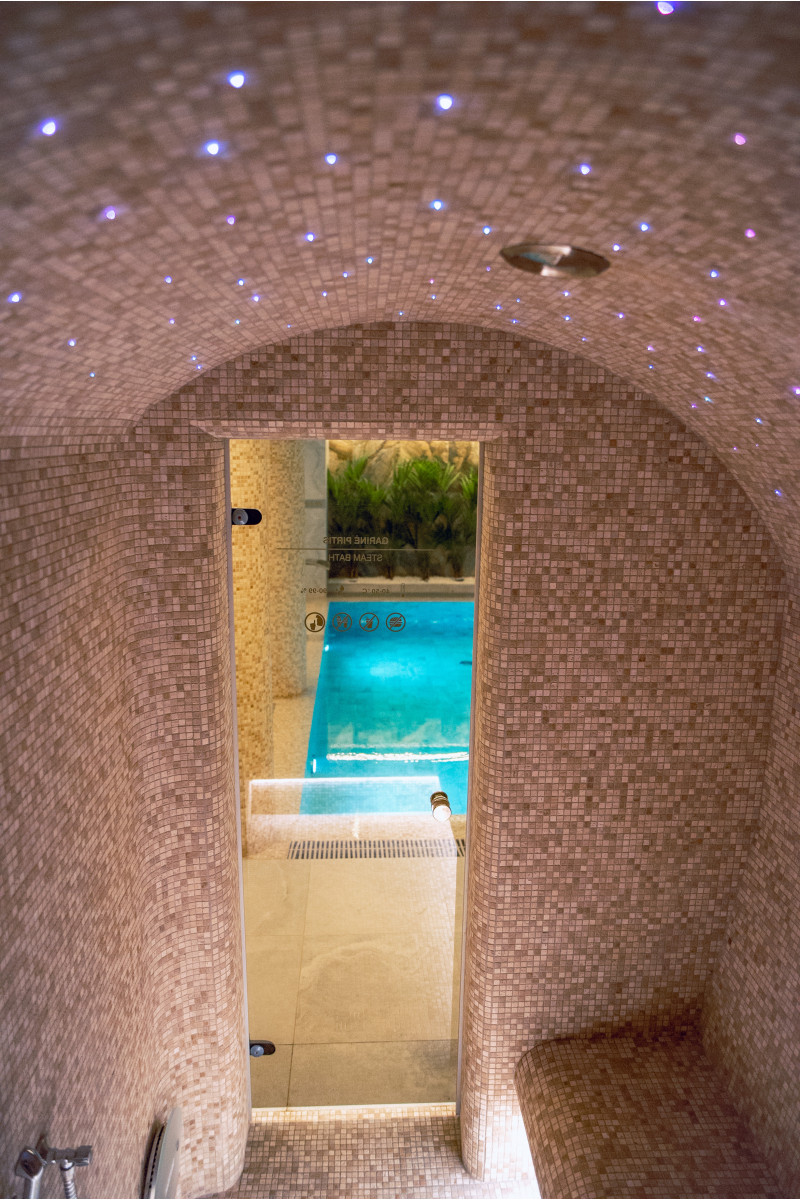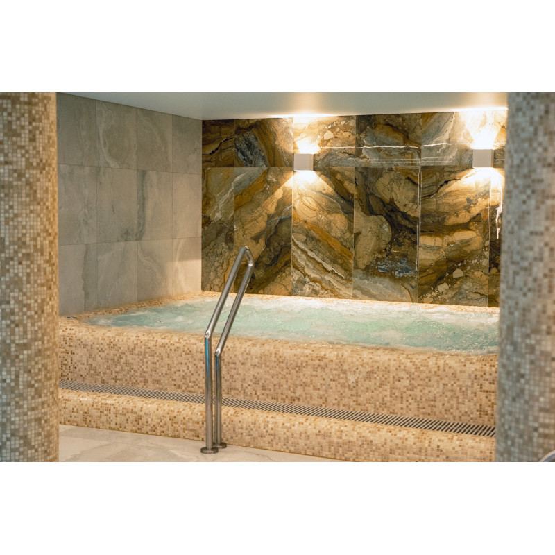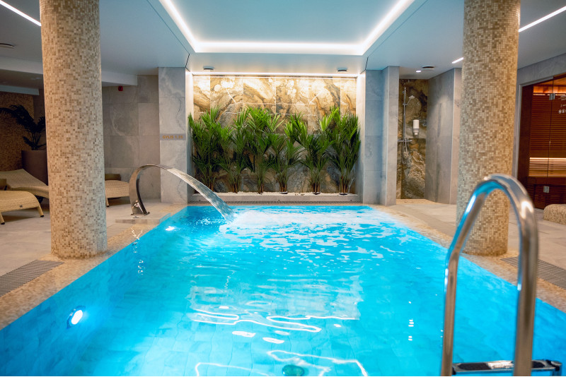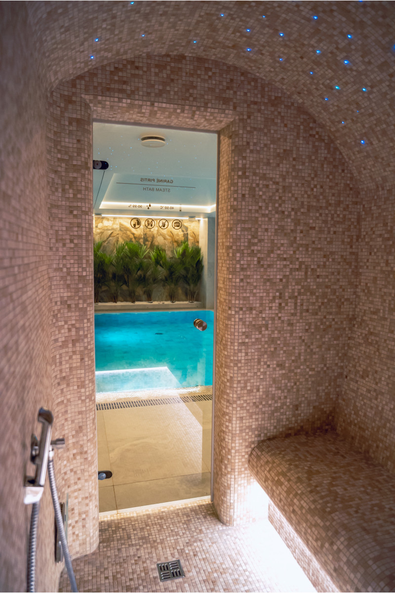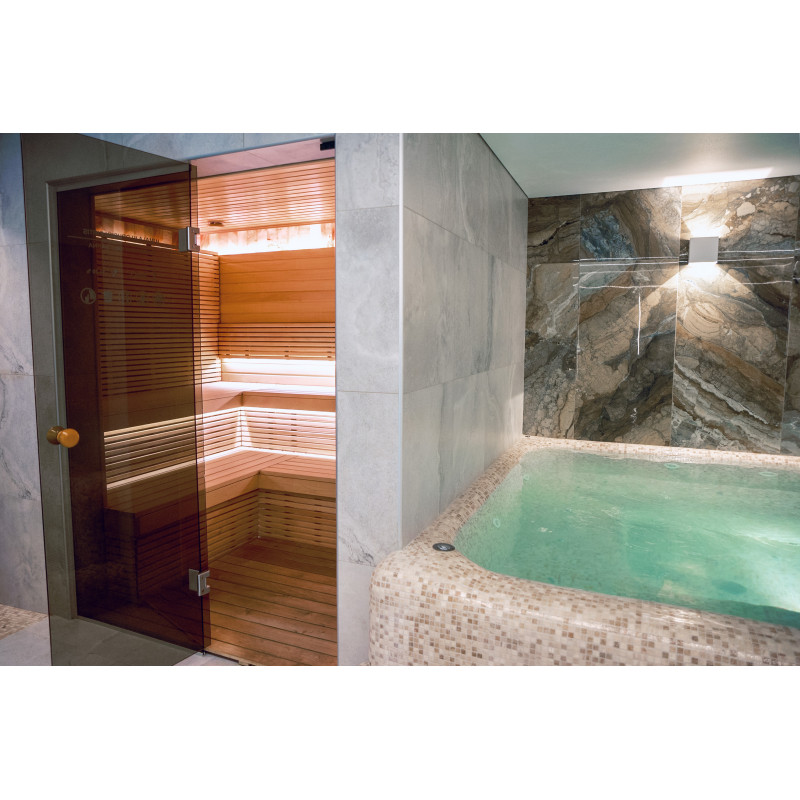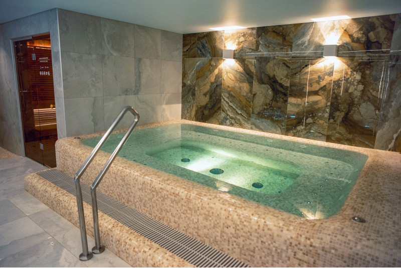 Kompleks vključuje parno sobo, savno, generator ledu in bazen z masažno šobo ter whirlpoolom.