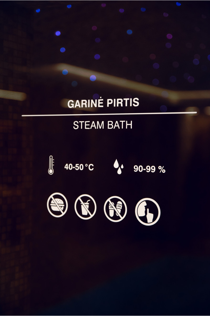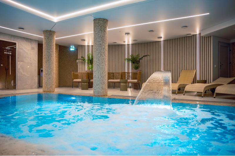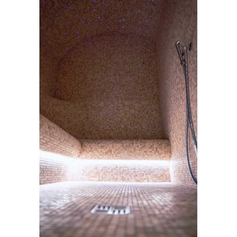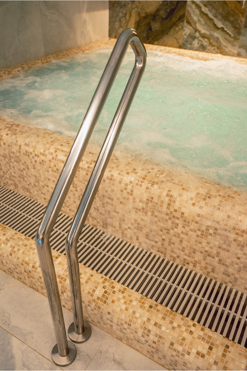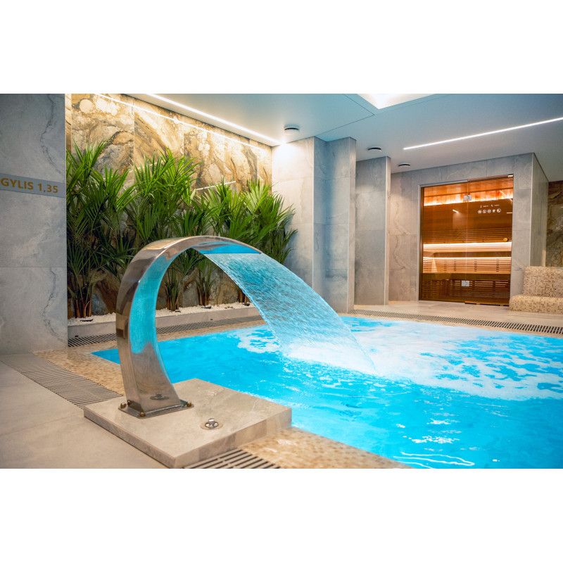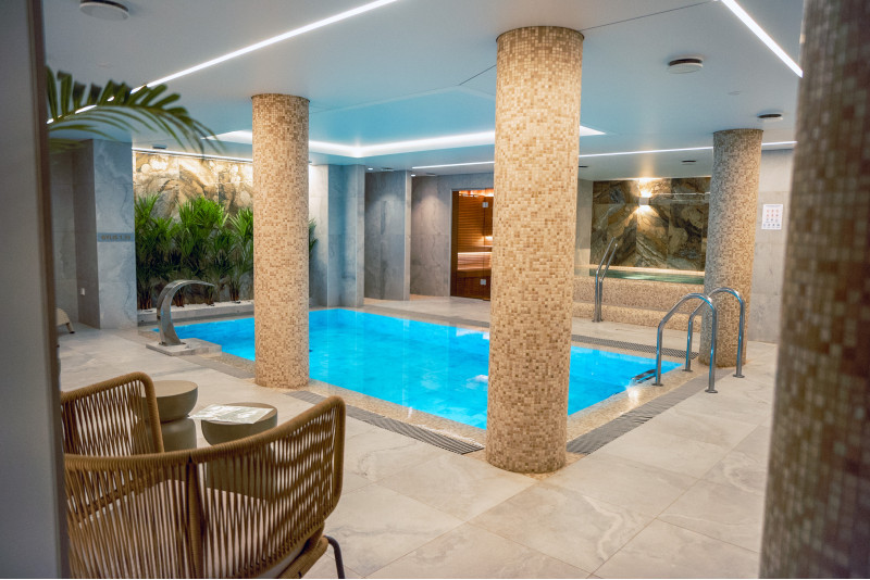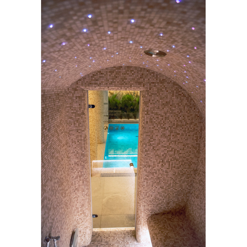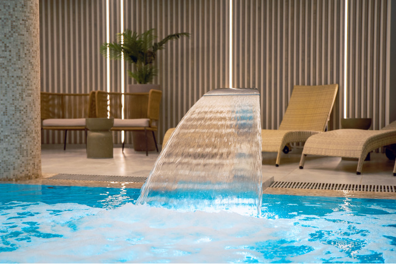 Kompleks vključuje parno sobo, savno, generator ledu in bazen z masažno šobo ter whirlpoolom.