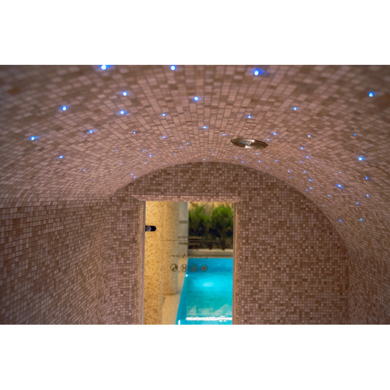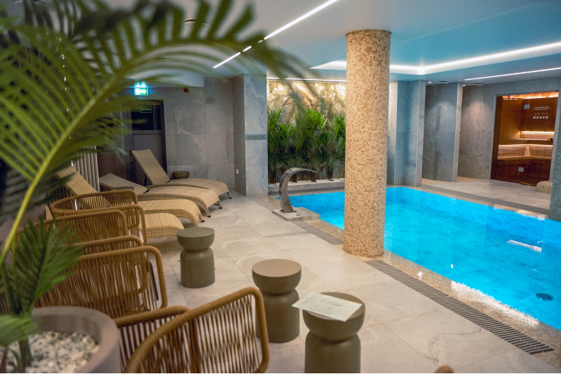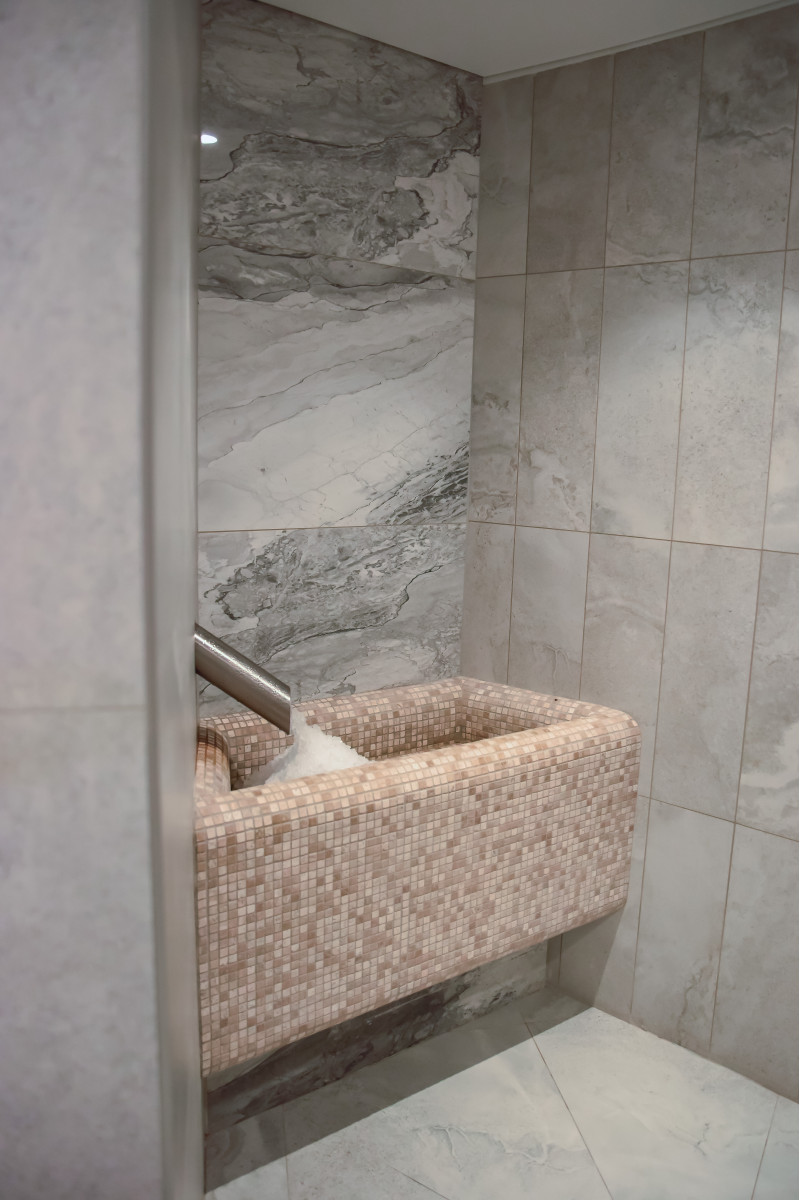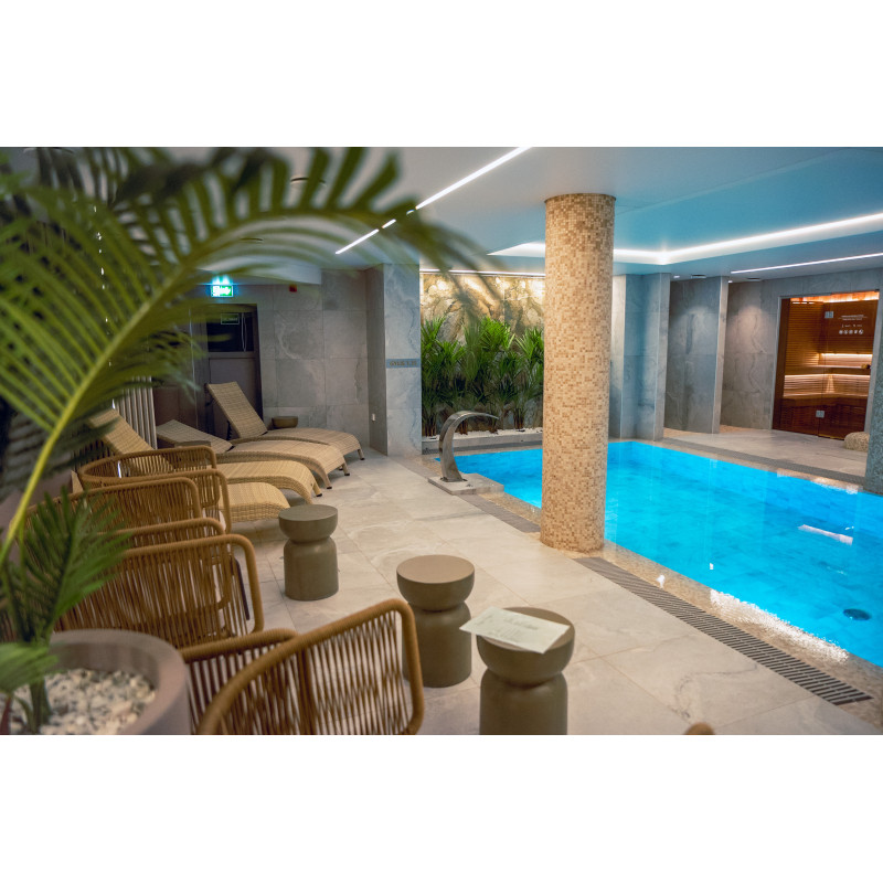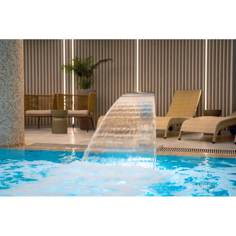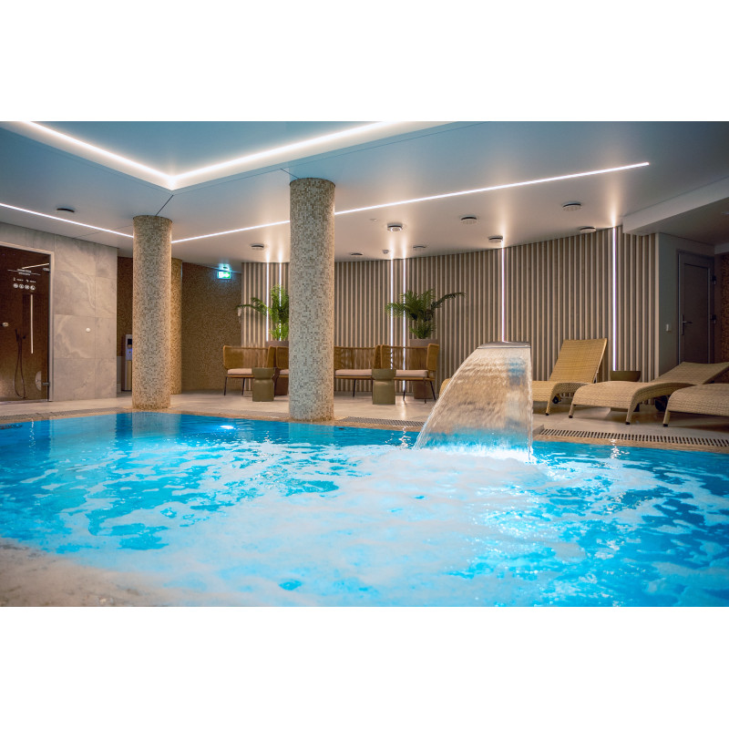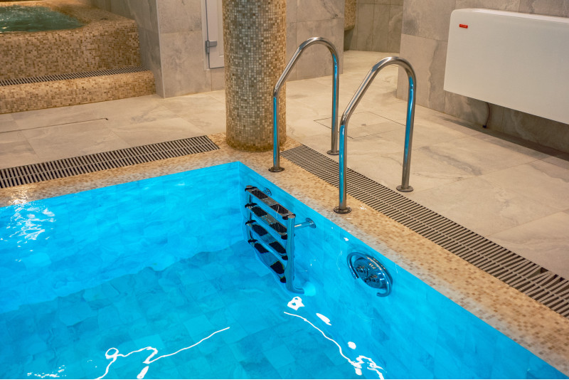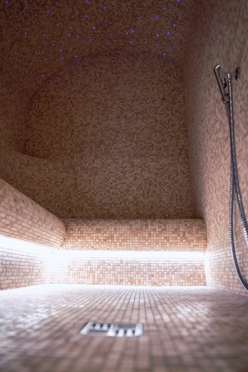 Kompleks vključuje parno sobo, savno, generator ledu in bazen z masažno šobo ter whirlpoolom.