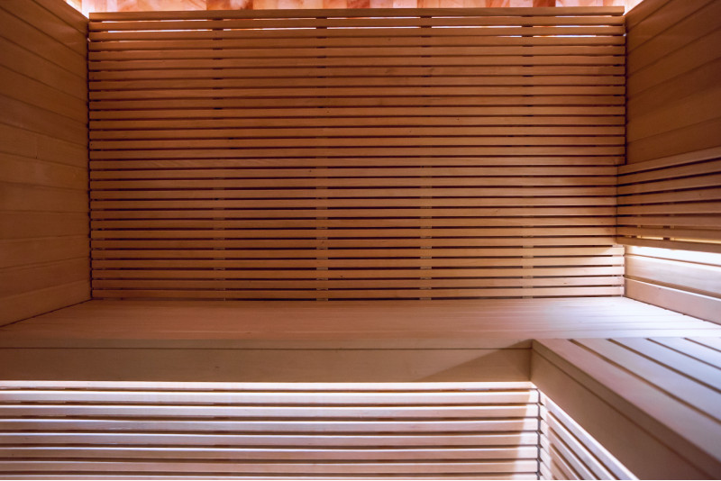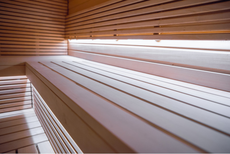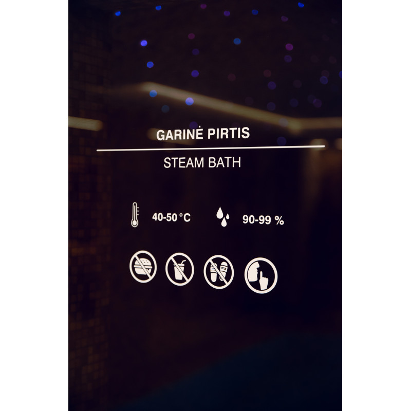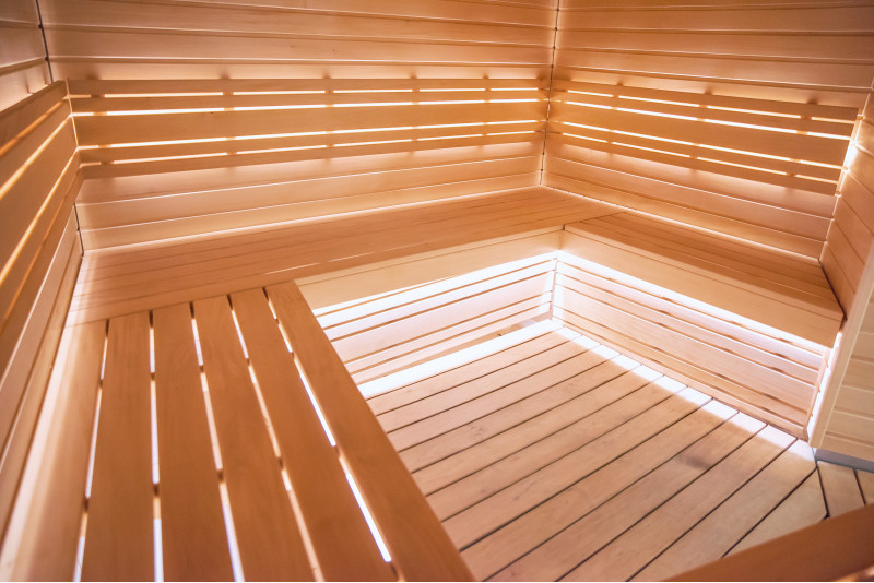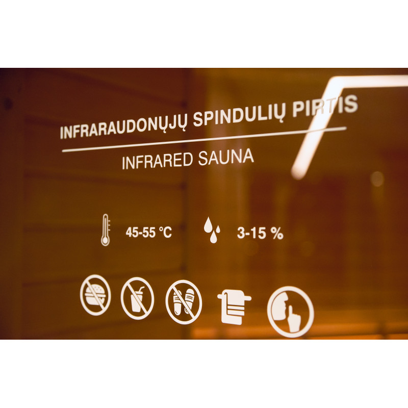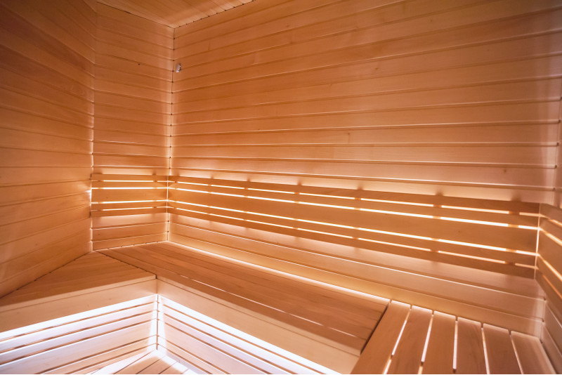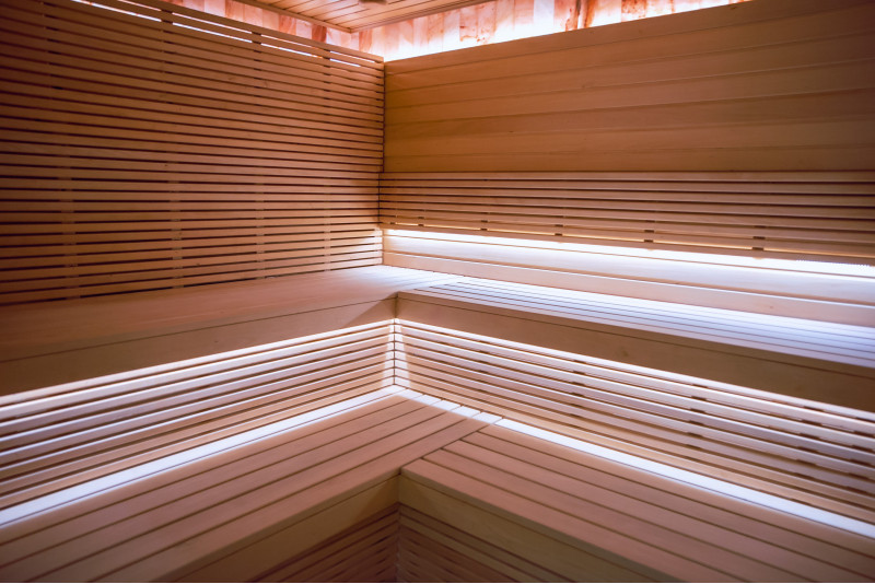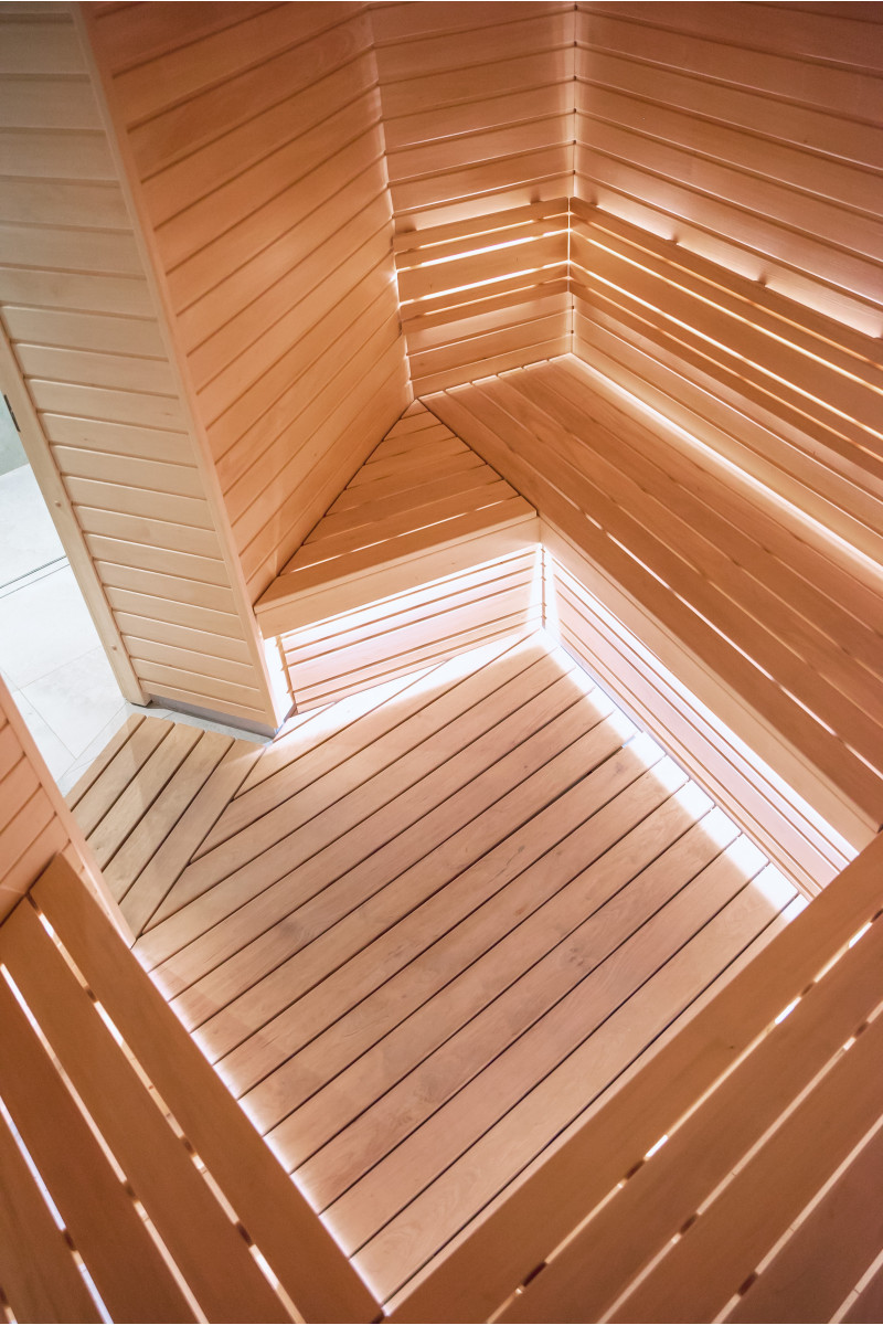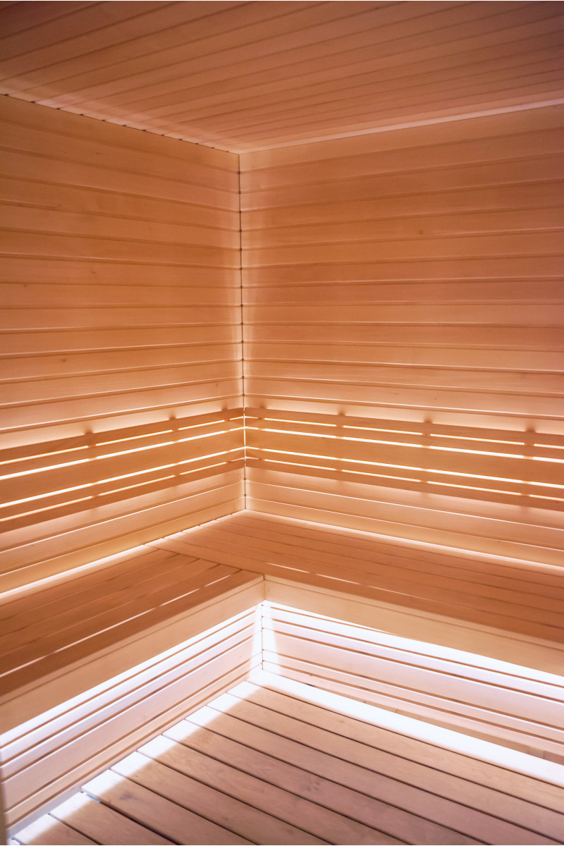 Savna je opremljena s prezračevalno opremo, LED osvetlitvijo pod zgornjimi pogradi in v hrbtnih oporah.