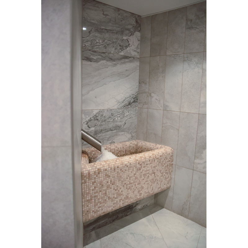 Notranje površine so oblikovane iz ekspandiranega polistirena z uporabo kontinuirano rezanega stirena XPS. Oblikuje se stropni lok. Položene mozaične ploščice. Vgrajen je prezračevalni sistem.