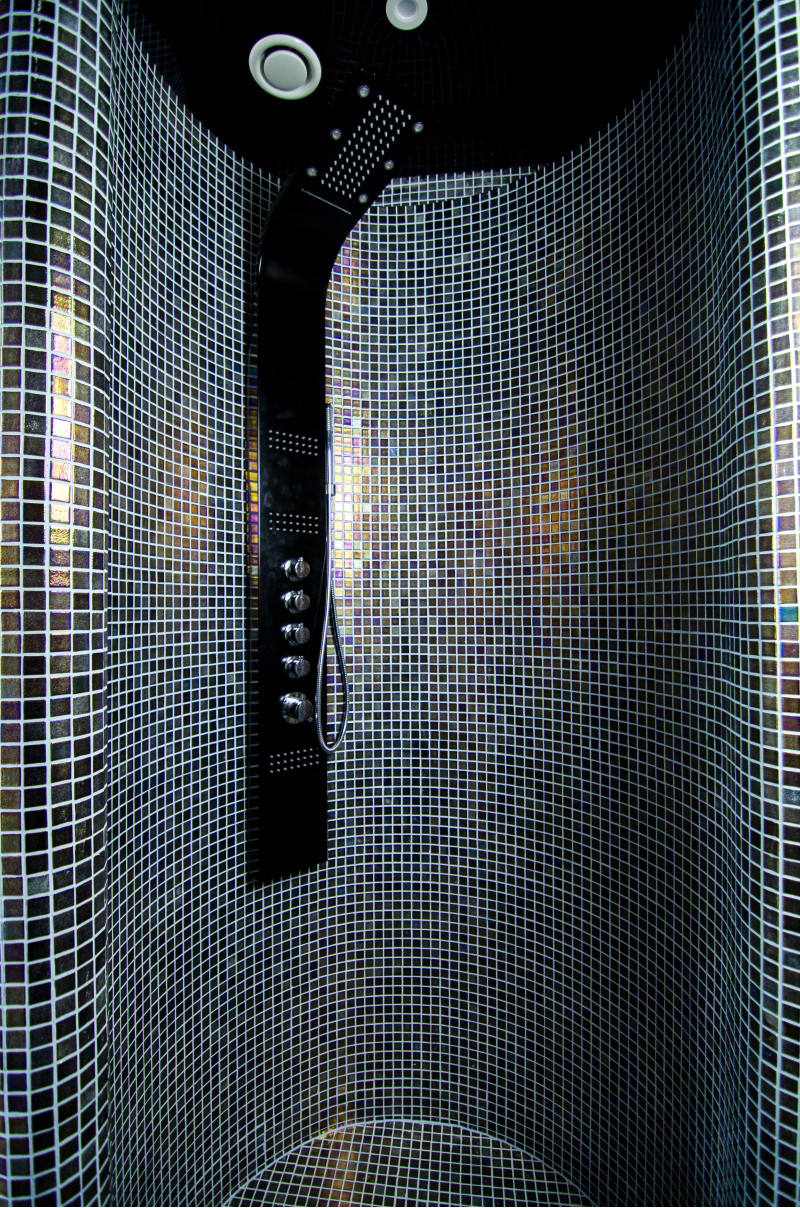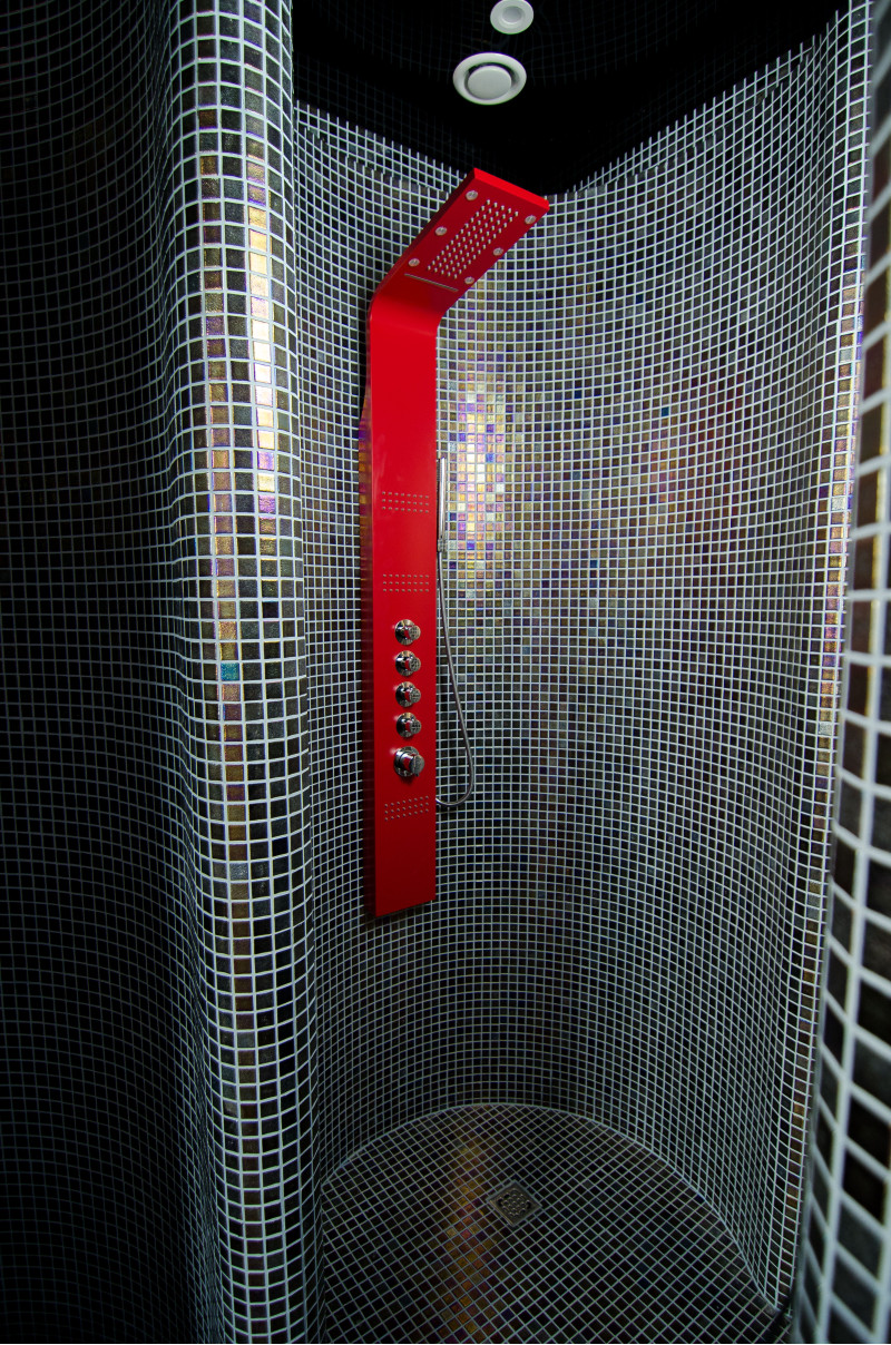 3 ukrivljeni tuši. Opremljen z okroglimi tuš kabinami z ojačitvijo in hidroizolacijo. Ena od prh ima hrastovo vedro s plastičnim vložkom.