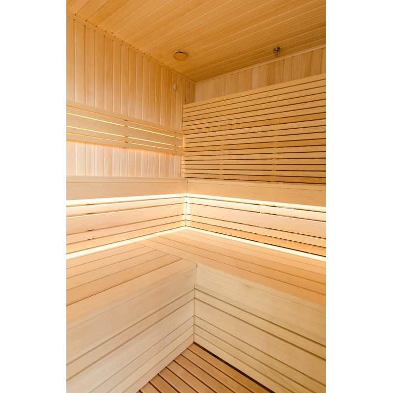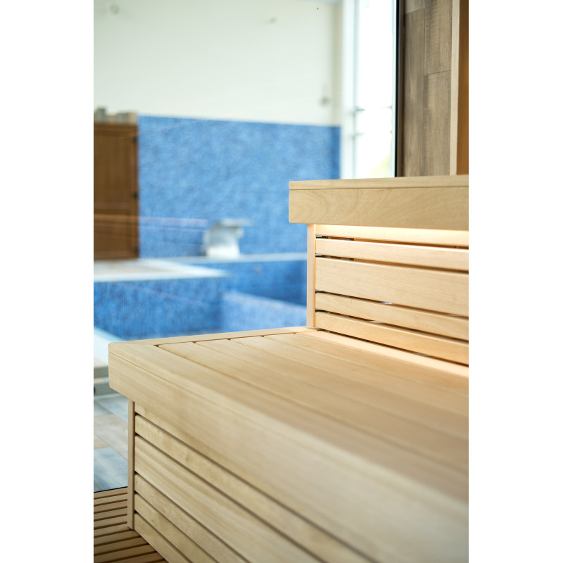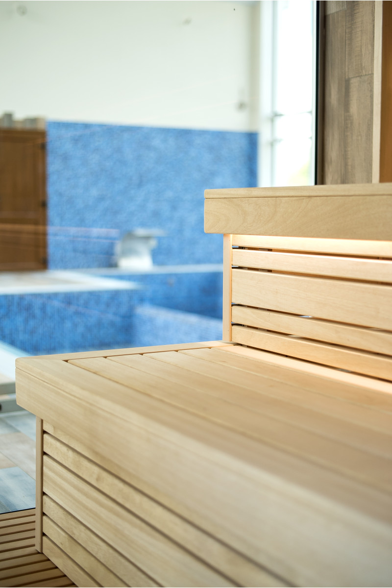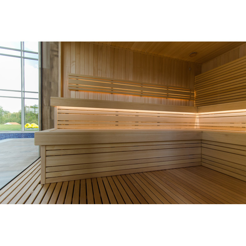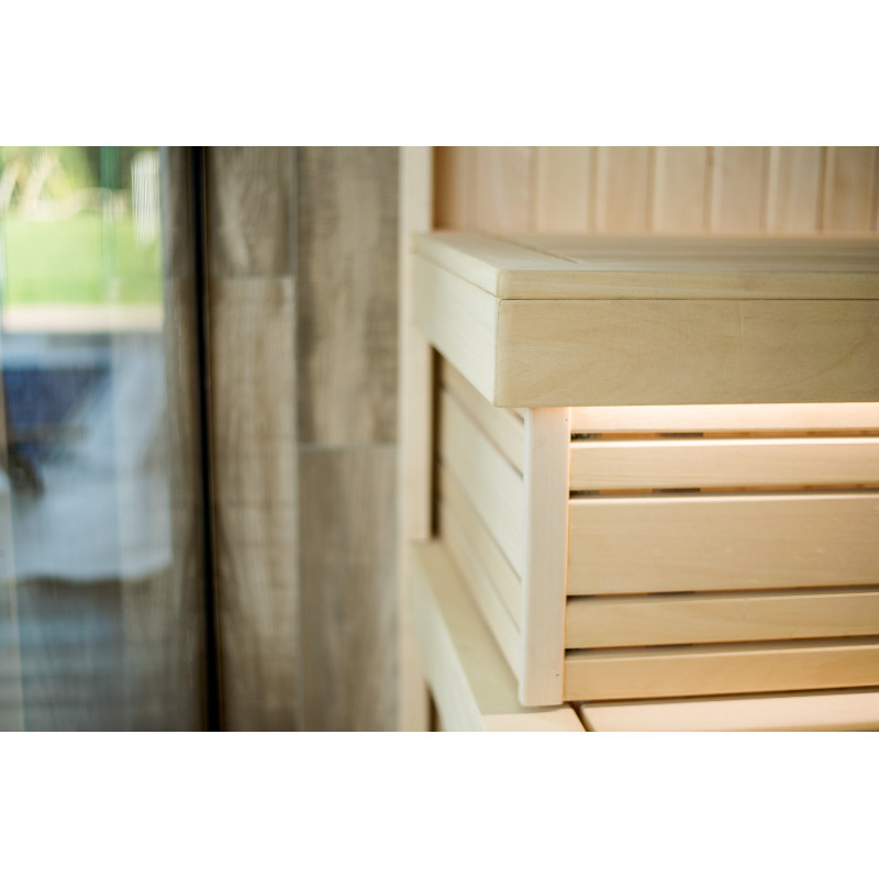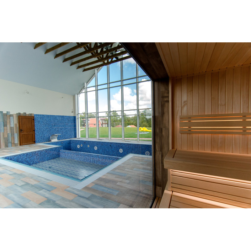 Savna. Notranji leseni detajli savne so izdelani iz lesa abachi, strop in stene pa iz julijskega lesa. Lastnosti: