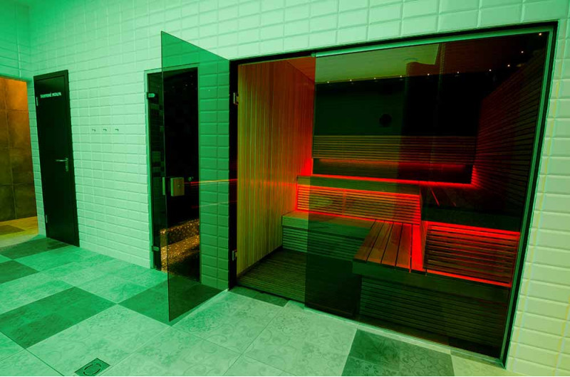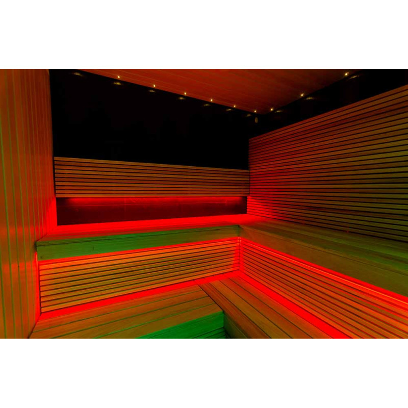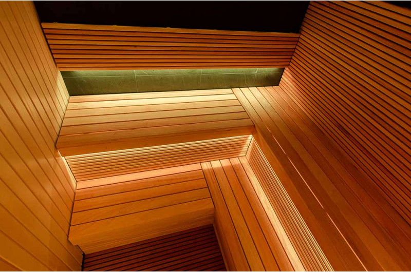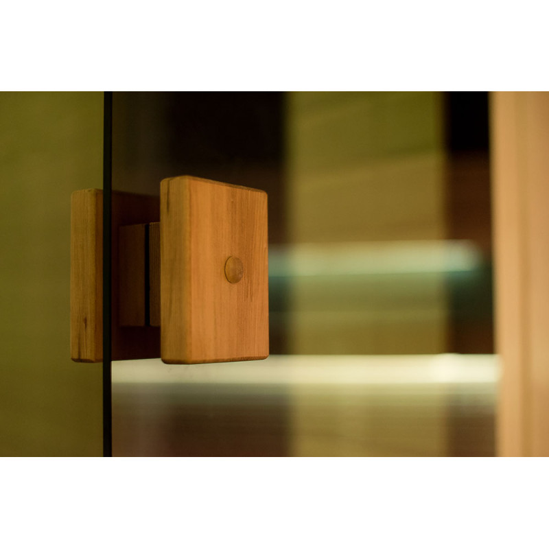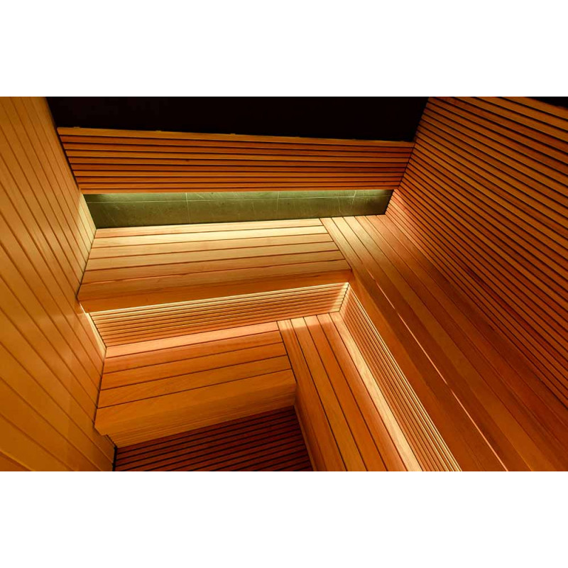 Za sobo v savni je izbran les Abachi - koži je prijazen, saj ne gori in se ne segreva, zato se je priročno razvajati z užitki savne. Oprema: