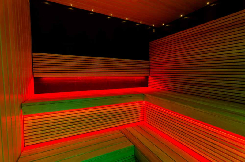 - poleg čudovitega razgleda užitek v savni povečuje tudi zvok - zvočniki, nameščeni pod savnami, so odporni na vlago, korozijo in temperaturo,